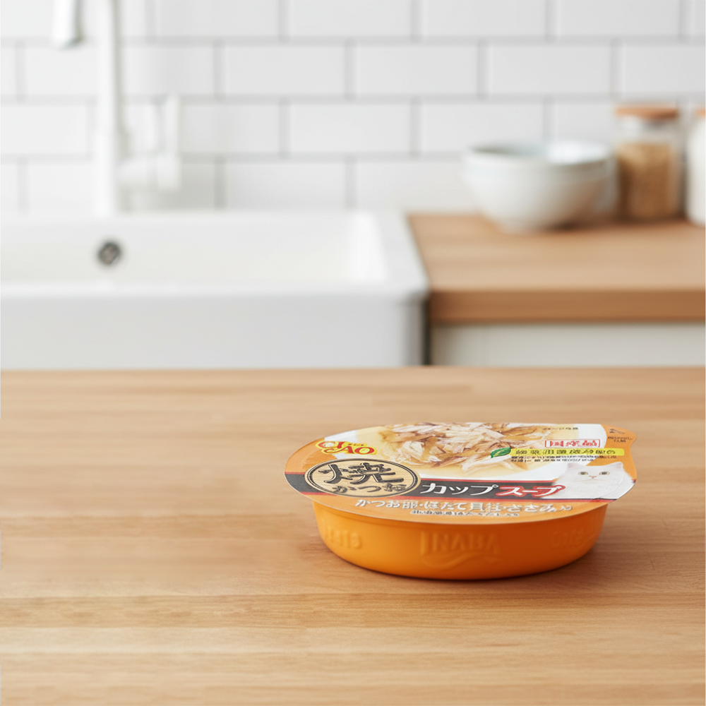 - 原湯杯口感滑順,鰹魚與雞肉完美結合,讓貓咪享受豐富層次,一口接一口停不下來。
