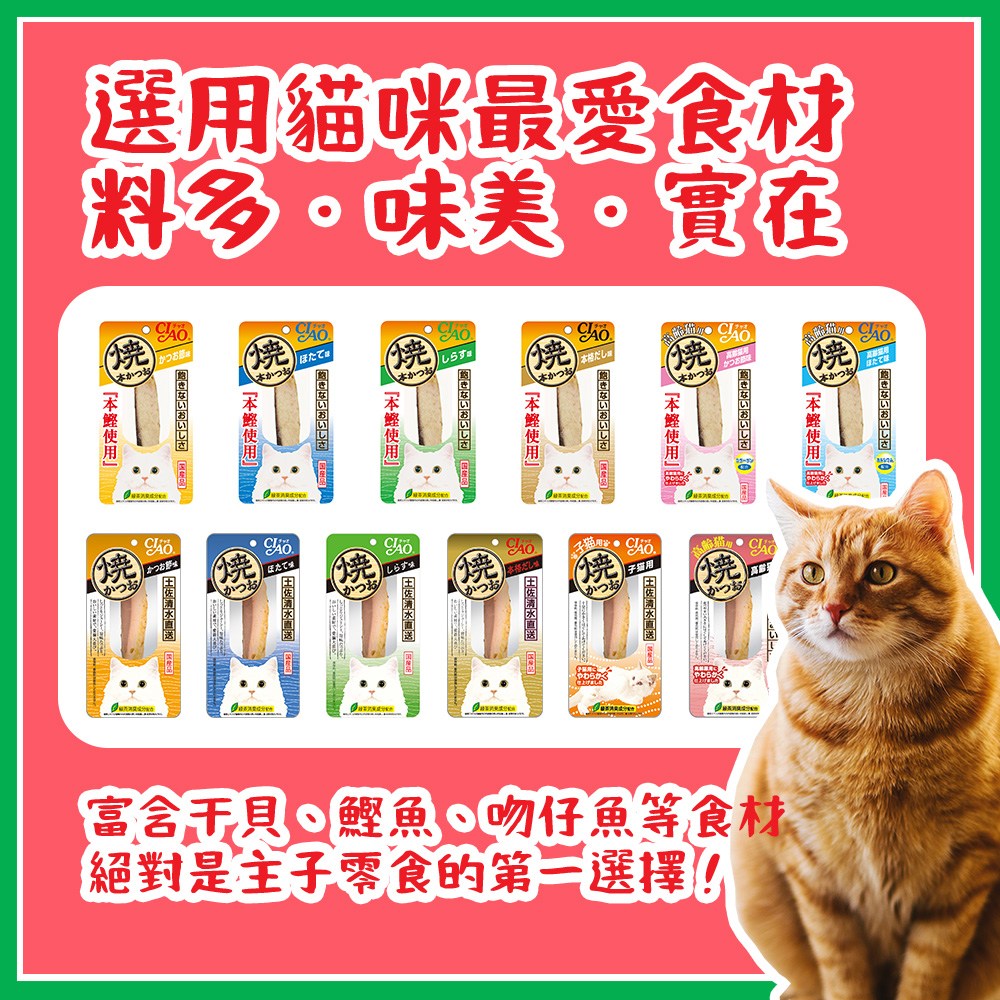 INABA CIAO 啾嚕燒鰹魚條,為您的愛貓帶來美味又健康的零食體驗。這款吻仔魚風味的燒鰹魚條,採用新鮮鰹魚製成,口感柔軟,易於貓咪食用。不僅美味可口,還富含蛋白質和Omega-3脂肪酸,有助於維持貓咪的健康。獨立包裝,方便餵食,讓您的愛貓隨時享受美味。無添加人工色素和防腐劑,讓您安心餵食。