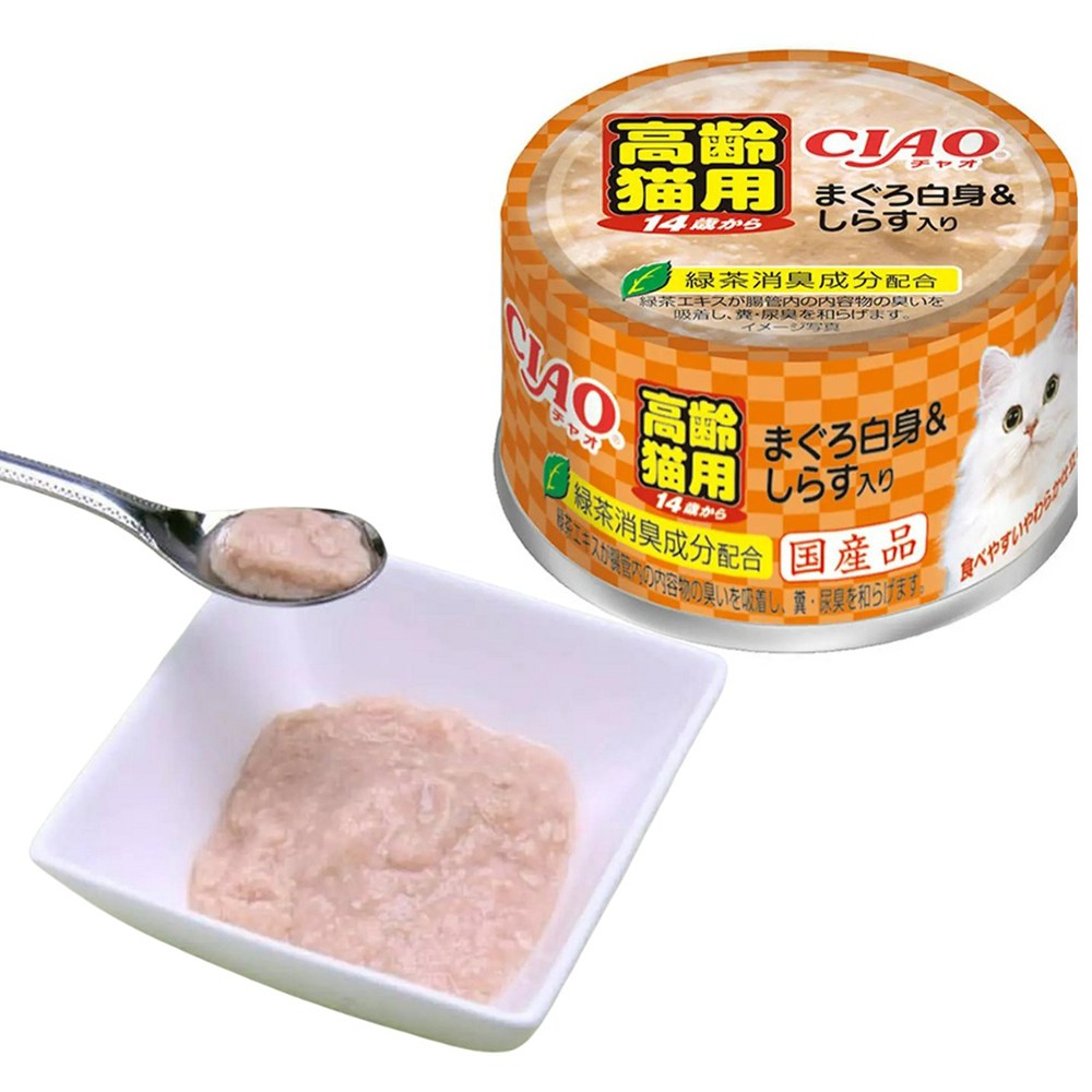 呵護家中高齡貓咪的健康,從飲食開始!INABA CIAO 啾嚕 14歲高齡貓用旨定罐,嚴選白身鮪魚搭配鮮美吻仔魚,提供易於消化吸收的優質蛋白質,呵護老貓的腸胃機能。特別添加綠茶消臭成分,有助於減少貓咪便便的異味,保持居家環境清新。每箱包含24罐85g的旨定罐,方便餵食與保存,讓您的愛貓隨時都能享受到美味又健康的餐點。