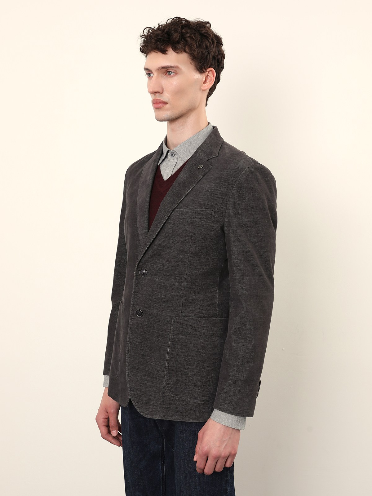 INDIAN燈芯絨修身夾克,採用舒適的燈芯絨材質,觸感柔軟,穿著體驗極佳。炭灰色調簡約百搭,輕鬆搭配各式服裝,展現個人風格。修身剪裁設計,凸顯身形,讓您看起來更加精神挺拔。適合秋季和冬季穿著,保暖又時尚。無論是日常休閒或商務場合,都能展現您的獨特魅力。