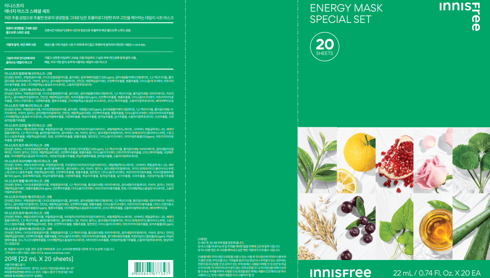 INNISFREE 我的真萃能量面膜組,以冷萃工法萃取,完整保留原料的營養價值。此面膜組包含多款不同功效的面膜,能有效解決肌膚乾燥、暗沉等問題,為肌膚提供深層滋養與修護。面膜材質輕薄服貼,能將精華液完整導入肌膚底層,使肌膚水潤透亮,煥發健康光采。每日一片,輕鬆享受客製化的護膚體驗,讓肌膚隨時保持在最佳狀態。特別套裝包含20片面膜,提供多樣化的選擇。
