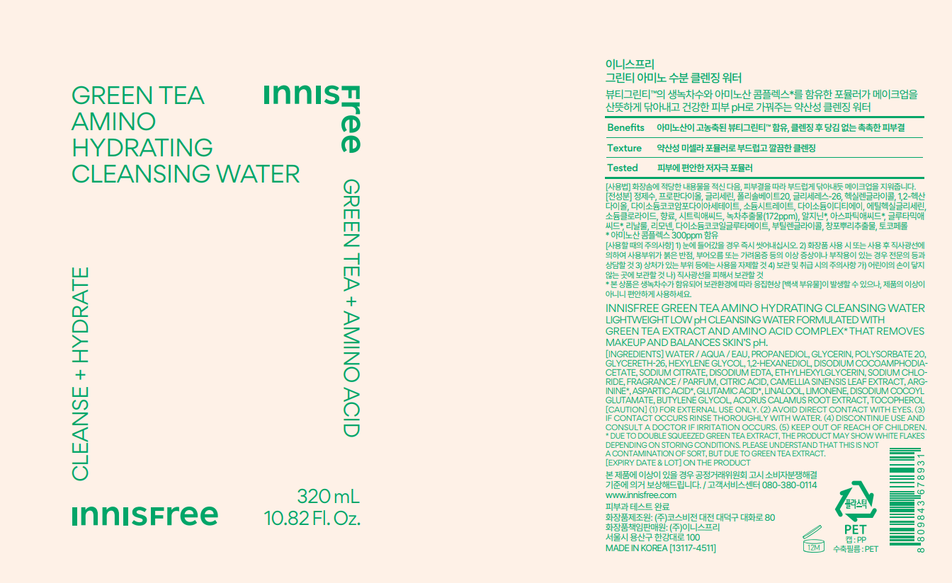INNISFREE綠茶保濕胺基酸卸妝水,採用濟州島美肌綠茶與胺基酸複合物,為肌膚注入水分,溫和卸除彩妝及汙垢。弱酸性配方,維持肌膚健康pH值,使用後肌膚不緊繃,感受水潤舒適。微分子技術深入毛孔,徹底清潔,使肌膚明亮潔淨。輕鬆卸除彩妝,同時享受保濕呵護,讓肌膚煥發自然光采。適合各種膚質,特別是乾燥及敏感肌膚。