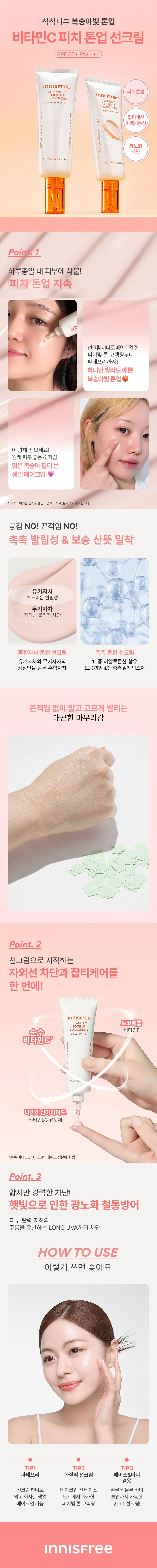 INNISFREE 維他命C提亮防曬霜,是一款具有亮白功能性的蜜桃色提亮防曬霜,富含維他命C、E和菸鹼醯胺,能有效提亮膚色,改善暗沉。這款防曬霜具有SPF50+ PA++++的高防曬係數,能全面阻擋UVA和UVB,保護肌膚免受紫外線傷害,預防光老化。其輕盈水潤的配方,能自然地為膚色覆上一層桃色光澤,打造清透亮麗的提亮膚色效果。不黏膩的質地,讓您整天保持清爽舒適,是日常防曬的理想選擇。