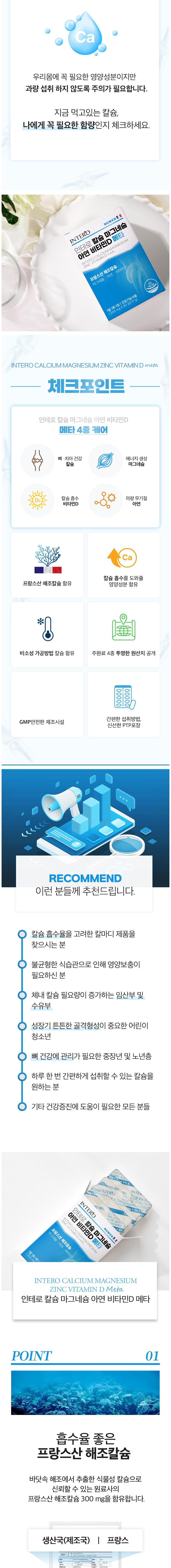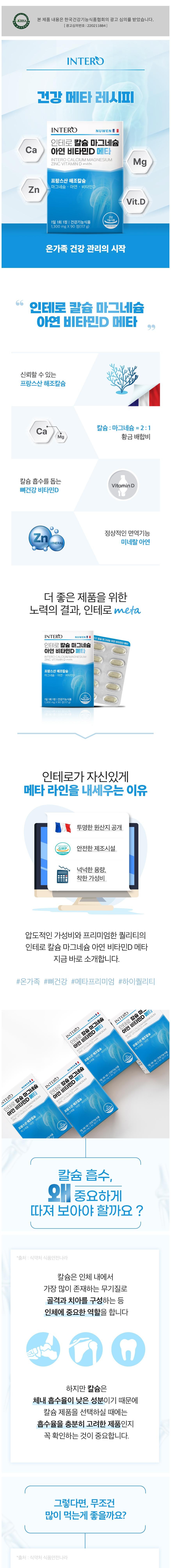 - Intero鈣鎂鋅維生素D錠,選用優質法國海藻鈣,搭配鎂鋅維生素D,促進鈣質吸收。