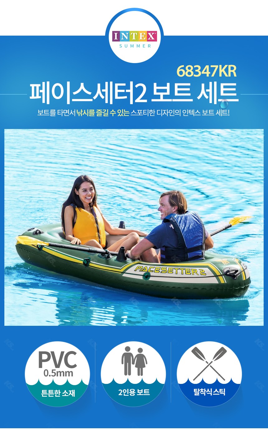 INTEX Pacesetter 2 船組讓您在夏日享受水上活動的樂趣。這款雙人船採用堅固的PVC材質製成,安全耐用,讓您安心享受划船的樂趣。船頭設有把手,方便拖拉和移動。配有可拆卸式槳和槳架,方便轉向和速度調節。附帶手動打氣筒,可快速充氣。船身兩側設有釣竿架,讓您在船上也能享受釣魚的樂趣。