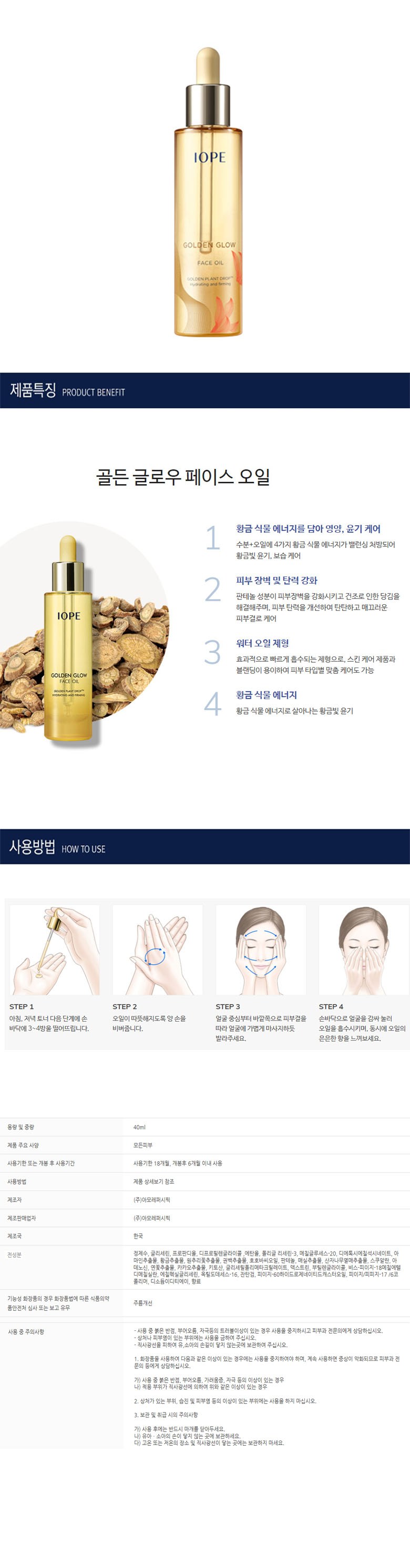 | 用法/保存方法 | 1.下一步早晚爽膚水,取3-4滴於手心,搓手溫油。 2. 從臉部中央向外,順著肌膚紋理,輕輕按摩於臉部。 3. 用手掌遮住臉部,按壓以吸收油脂。 | 成分 | 查看詳細內容 |