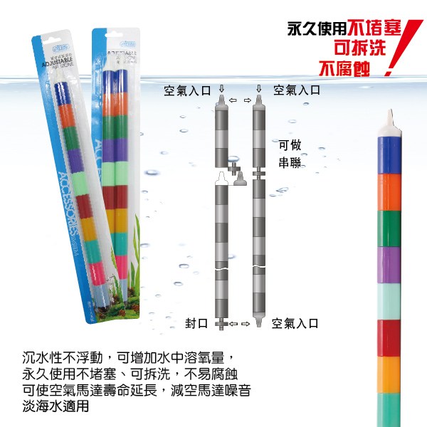 - - 可自由組合氣泡石長度,適用於各種尺寸魚缸,靈活方便。