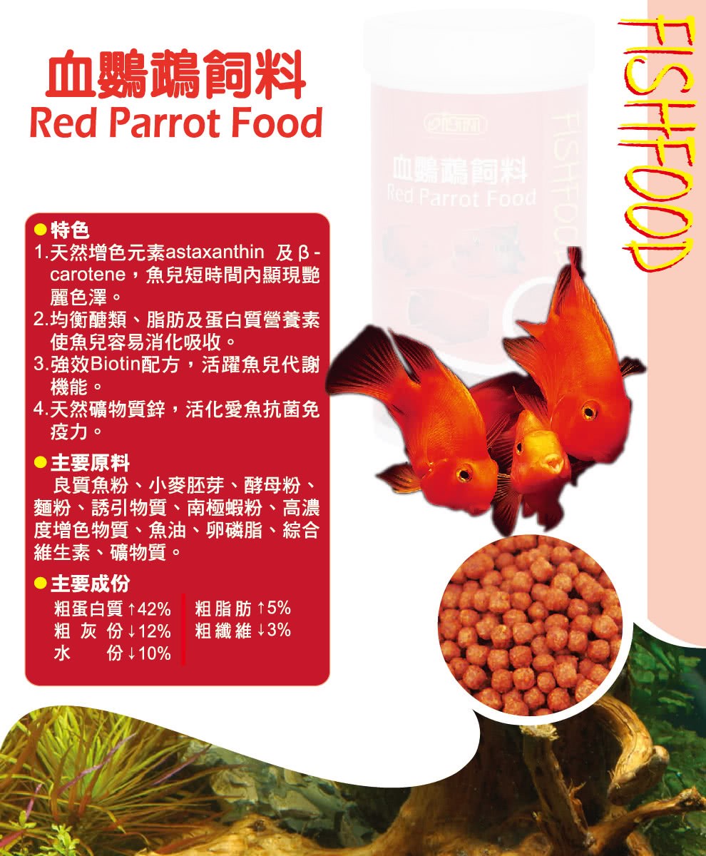 - 添加增色元素,能幫助血鸚鵡在短時間內展現鮮豔亮麗的色彩,更具觀賞價值。