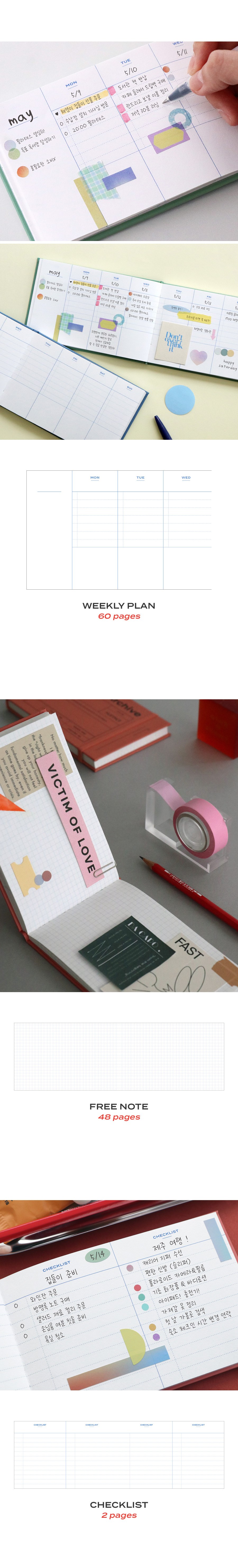 - 這款萬年筆記本採用每週計畫格式,讓您輕鬆追蹤行程與重要事項,提高時間管理效率。