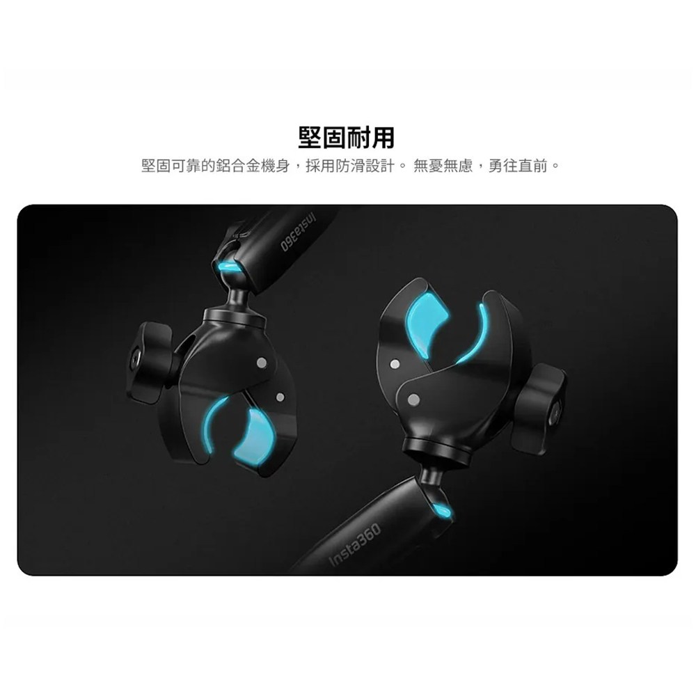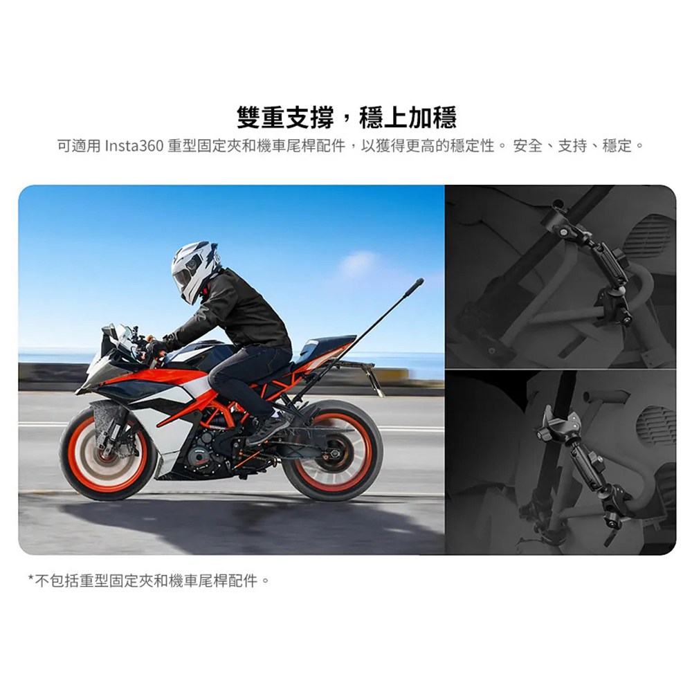 - 雙重支撐設計,適用於Insta360重型固定夾和機車尾桿配件,提供更高的穩定性,確保安全。