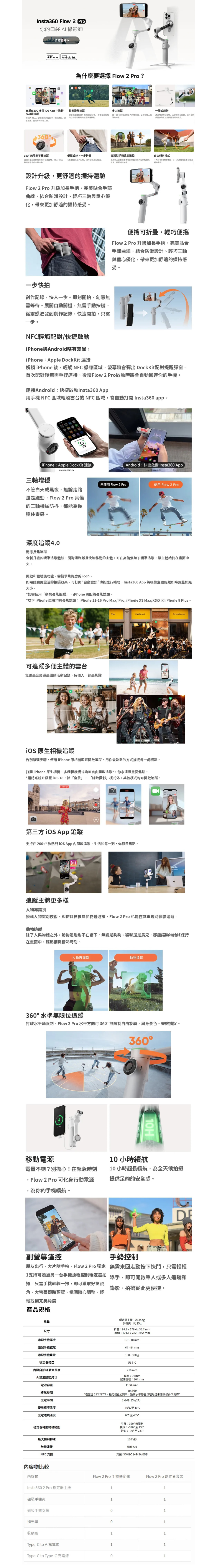 Insta360 Flow 2 Pro手機三軸穩定器,是您的口袋AI攝影師。設計升級,握持體驗更舒適,加長手柄完美貼合手部曲線,結合防滑設計與重心優化,帶來更佳的握持感受。它還具備便攜可折疊的特性,輕巧易於攜帶。展開自動開機,讓您快速捕捉每一個精彩瞬間。三軸增穩技術,確保畫面穩定,讓您的創作靈感不受限。