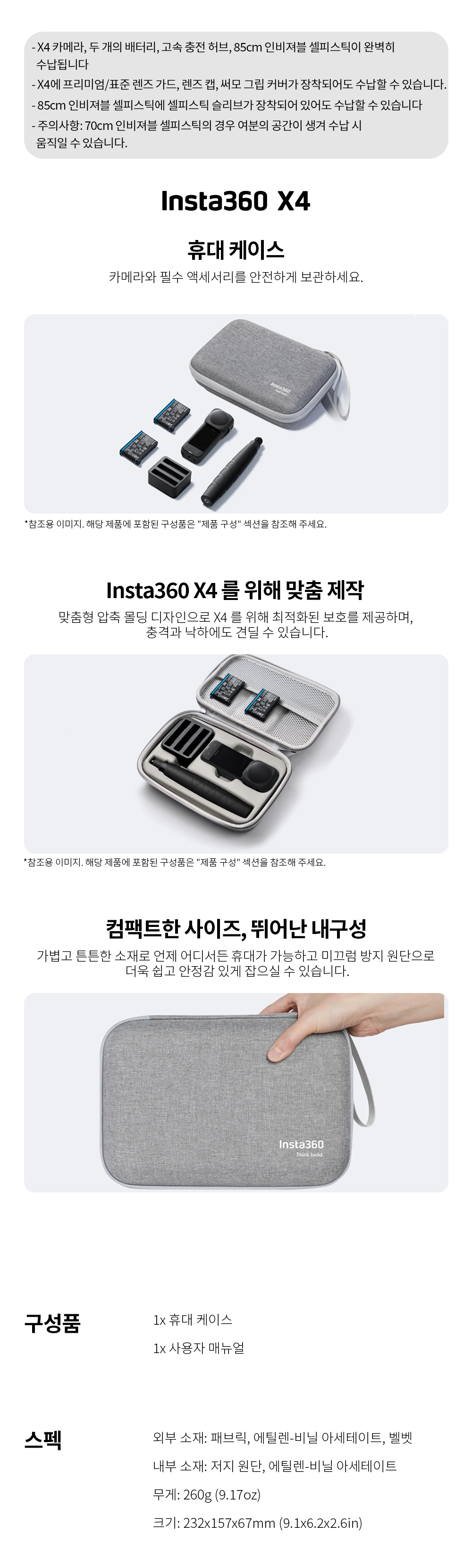 - 輕巧便攜設計,讓您隨時隨地安全存放Insta360 X4相機與所有必備配件,輕鬆帶著走。