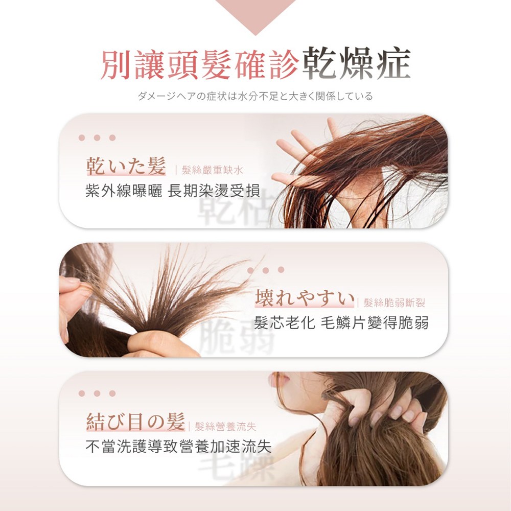 - 優點: 乾燥毛躁髮絲秒變柔順亮澤