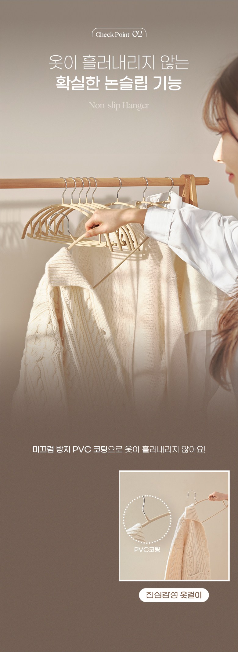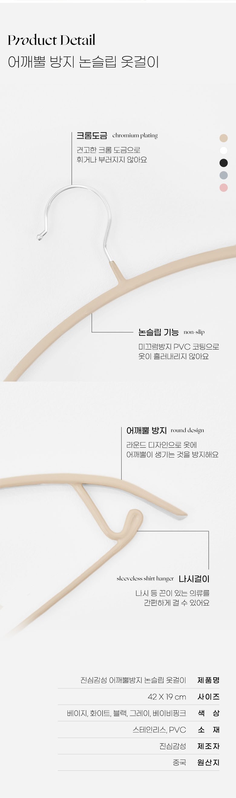 ■ 防滑PVC塗層,防止衣物滑落。