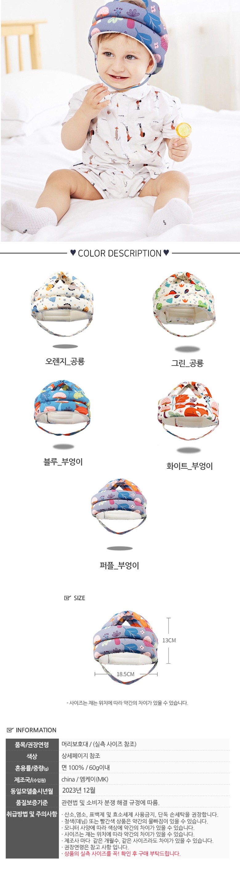 - 採用輕盈透氣材質,配有通風孔設計,減少悶熱感,讓寶寶配戴舒適無負擔。