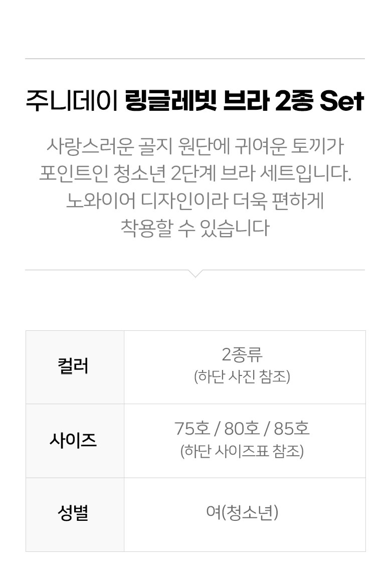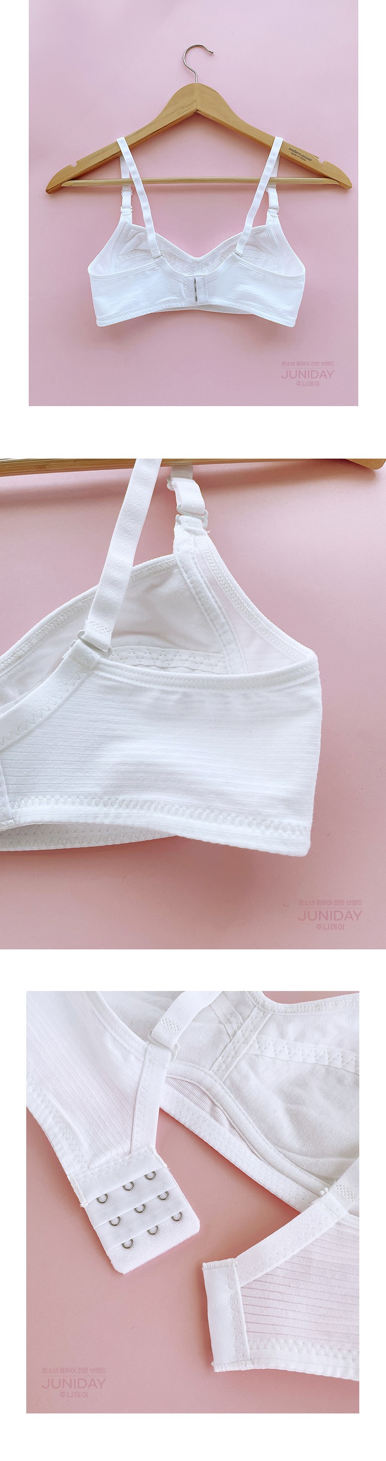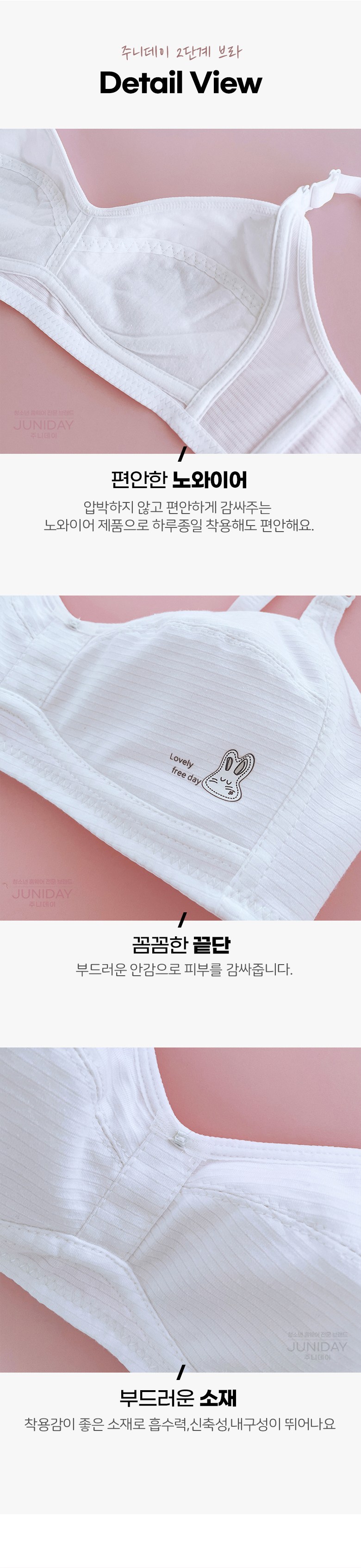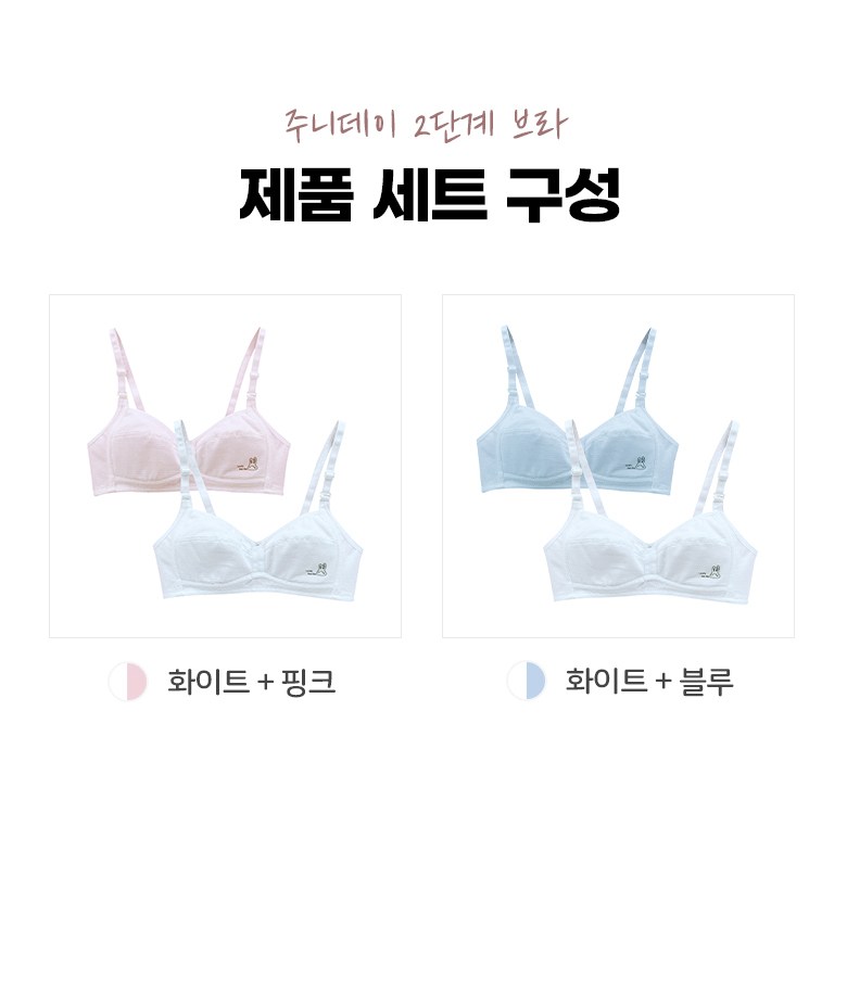 JUNIDAY可愛兔子成長內衣2入套裝,專為青少年設計,採用柔軟舒適的羅紋布料,搭配可愛的兔子造型點綴,增添青春活力。無鋼圈設計,提供無壓迫感的舒適穿著體驗,讓女孩們在成長階段也能自在活動。此款內衣吸濕排汗,透氣性佳,適合日常穿著。套裝包含兩種顏色,白色+藍色,方便替換。材質為棉95%與聚酯纖維5%混紡,建議手洗並避免烘乾,以延長產品壽命。