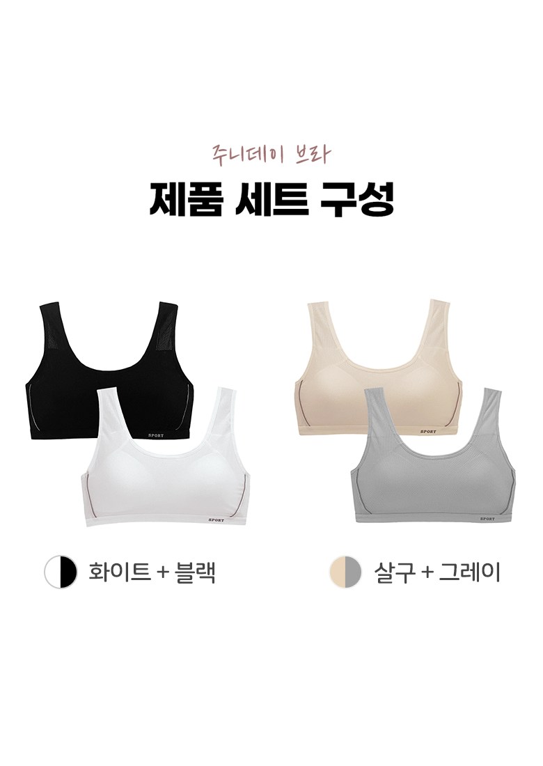 JUNIDAY時尚簡約網狀透氣內衣兩件組,專為青少年設計,運動風搭配現代色彩,展現青春活力。採用透氣性佳的網眼布料,易於洗滌且觸感舒適,適合四季穿著。一體成型罩杯提供舒適支撐,即使活動量大也能整天保持舒適。柔軟肩帶溫和包覆肌膚,不造成刺激。杏色與灰色兩件組,讓妳每天都充滿可愛氣息。