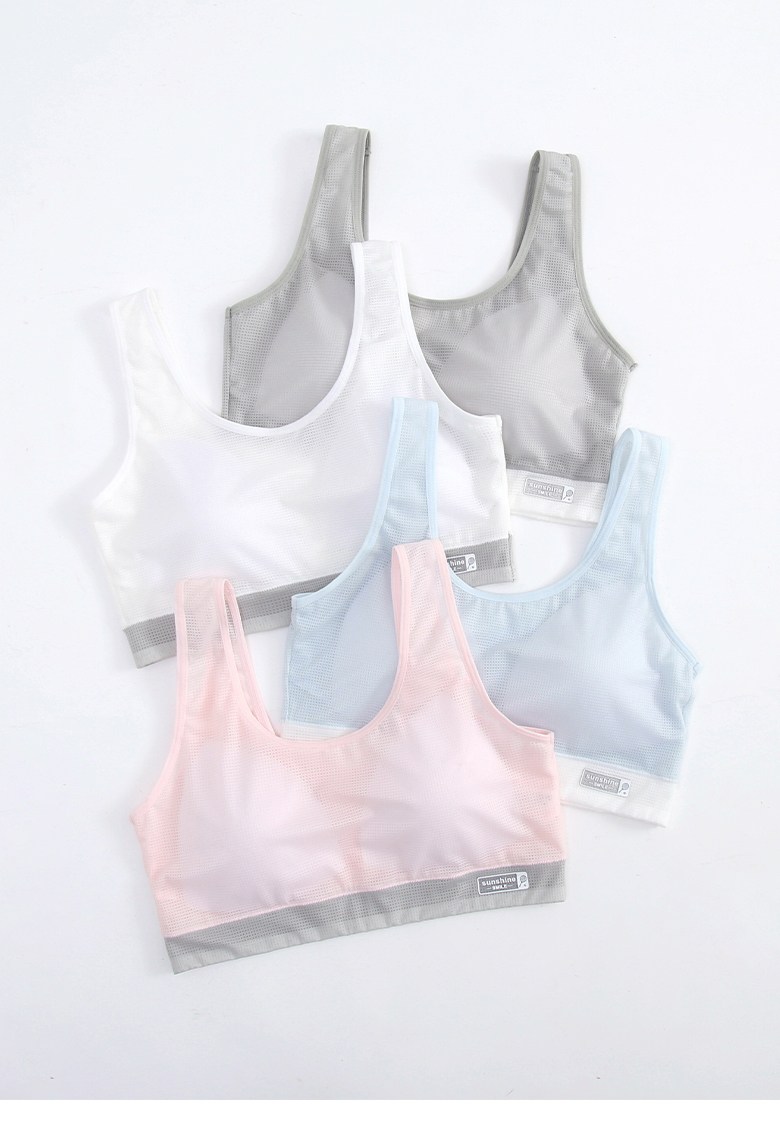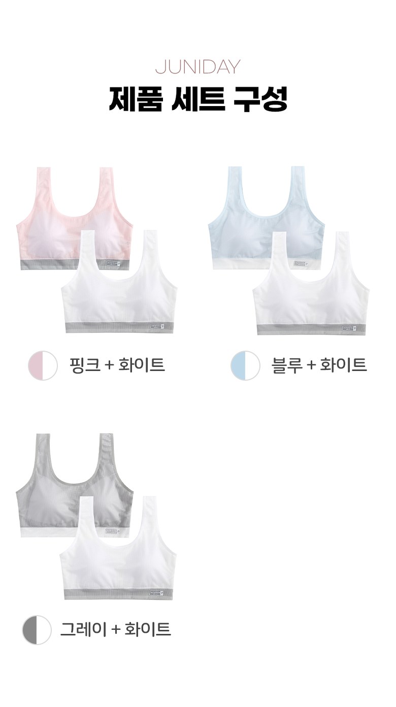 JUNIDAY 網路佈線 D 胸罩 2 件套,專為14歲以上青少年設計。採用透氣網眼布料,讓孩子們在活動時保持乾爽舒適。罩杯一體成型,提供溫柔支撐,呵護正在發育的胸部。此套裝包含藍色和白色兩件,方便日常替換。尺寸有75、80、85可選,請參考尺寸表選擇合適的尺寸。建議手洗,避免使用漂白劑和烘乾機。