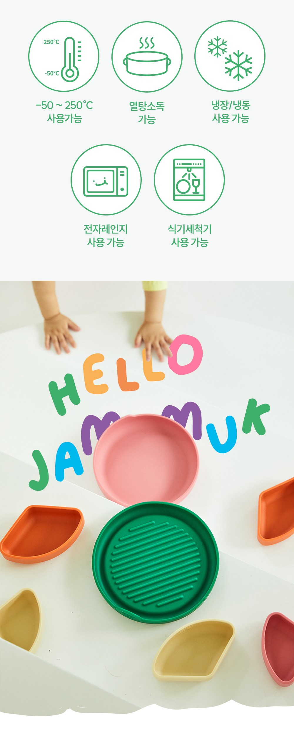 Jam Muk 嬰兒副食品矽膠吸盤餐盤託盤蓋子組合, 1套, 綠色