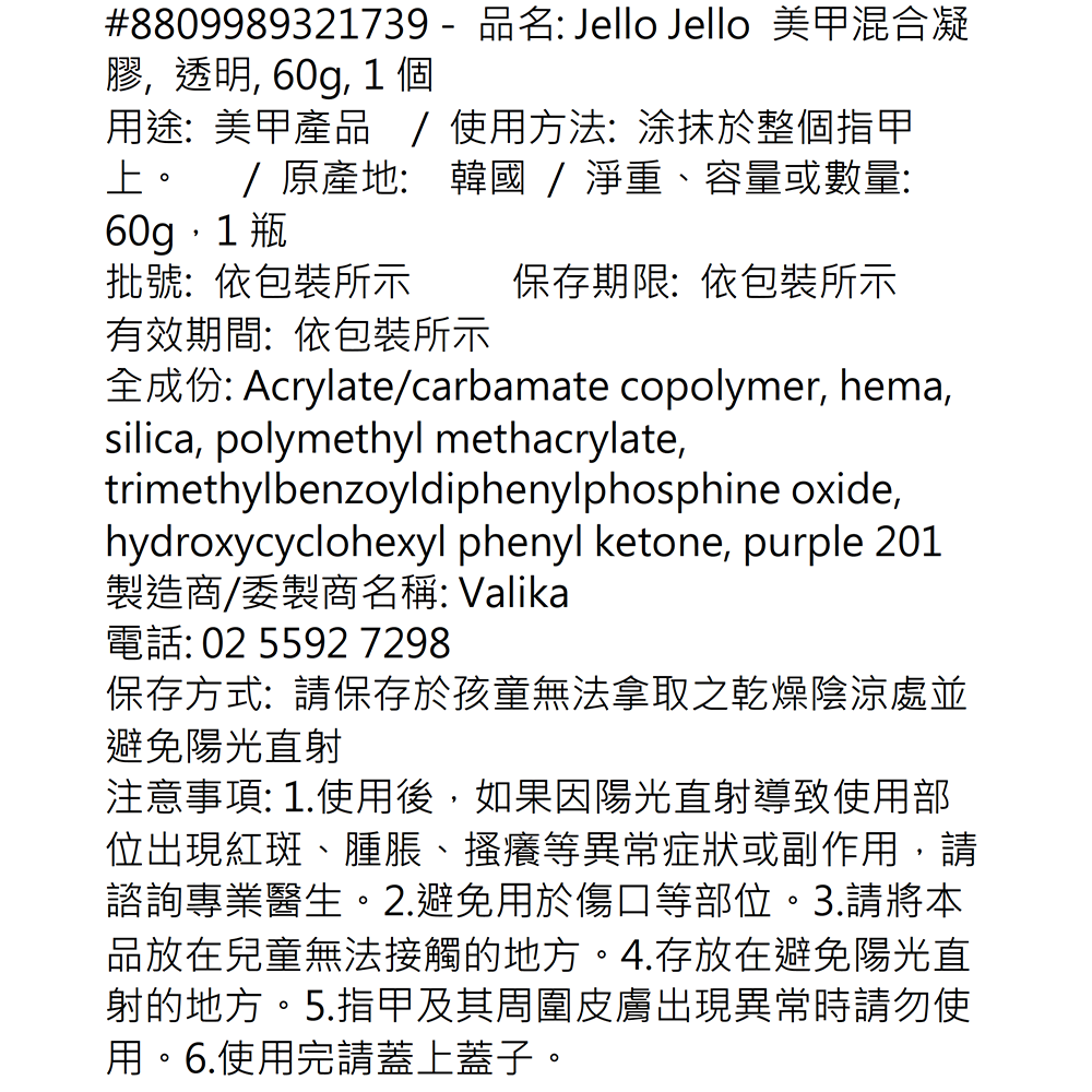 JELLO JELLO 美甲混合凝膠是一款透明的凝膠產品,專為美甲設計。其獨特的透明質地,能讓您隨心所欲地混合各種色彩與亮片,創造出獨一無二的美甲風格。60g的容量,足夠您多次使用,輕鬆打造出專業級的美甲效果。無論是新手還是美甲愛好者,都能輕鬆上手,享受DIY美甲的樂趣。