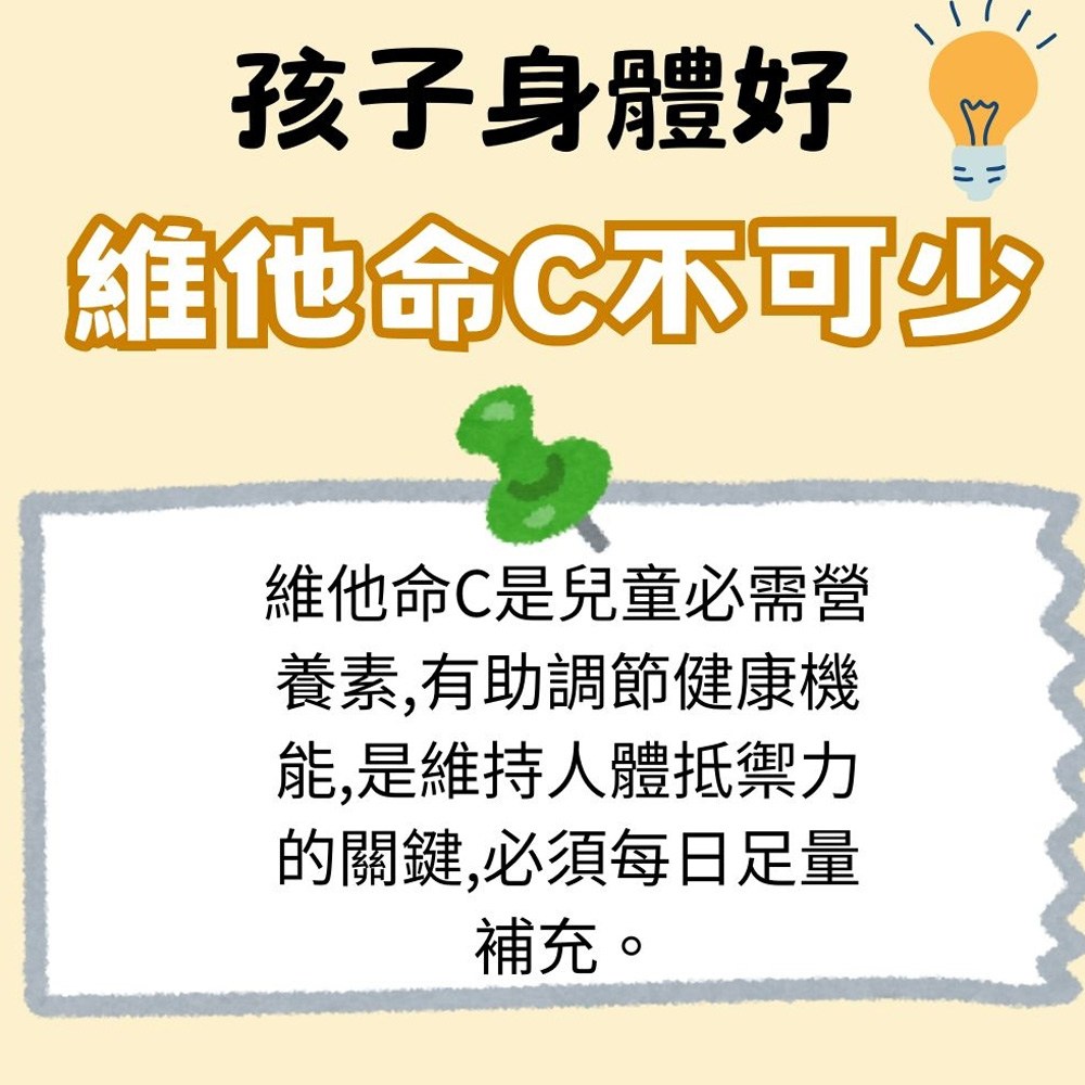 - 兒童維他命C咀嚼錠,酸甜好滋味,就像吃糖果一樣,讓孩子在享受美味中補充維生素。