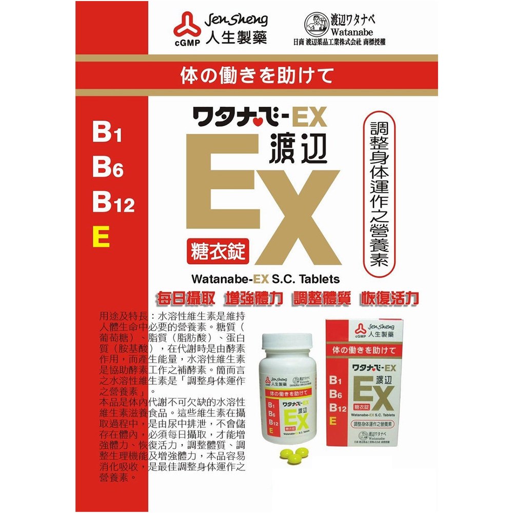 - 人生製藥渡邊EX糖衣錠,迅速補充您每日所需的B群,維持身體機能正常運作。