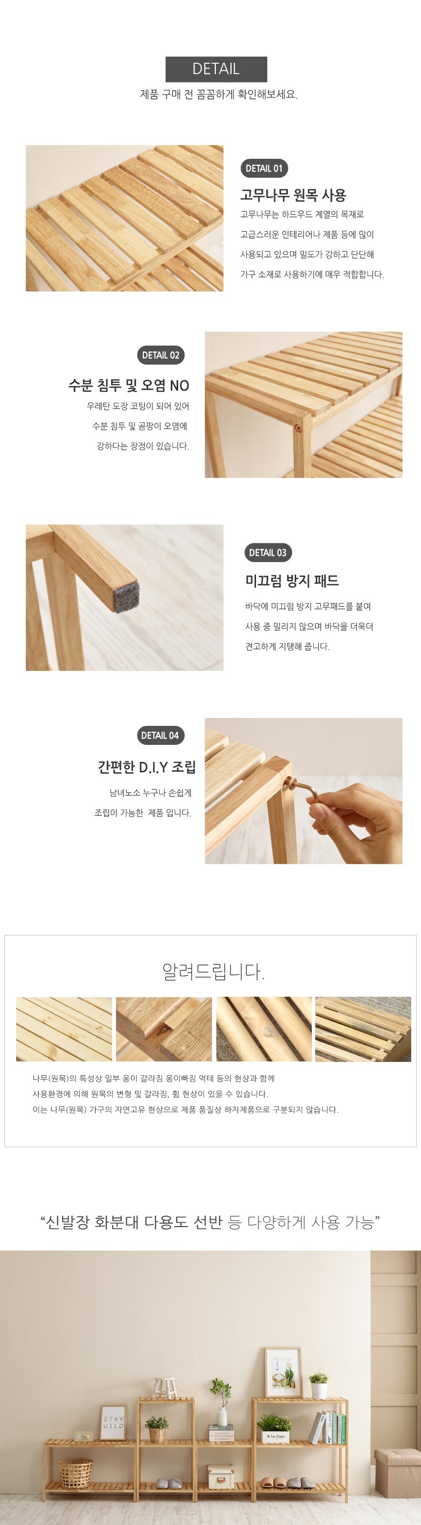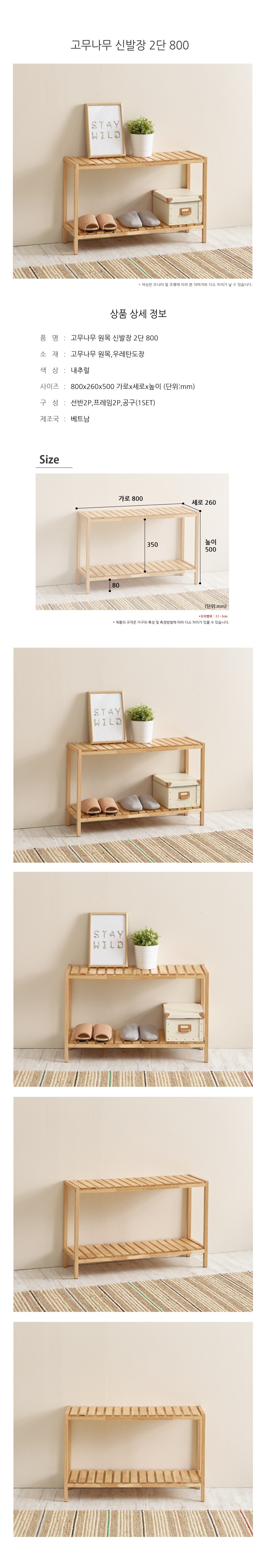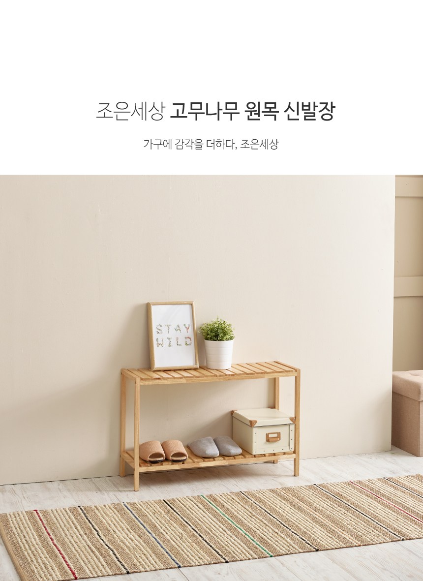 Joeunworld 橡膠木實木鞋櫃 800, 自然色