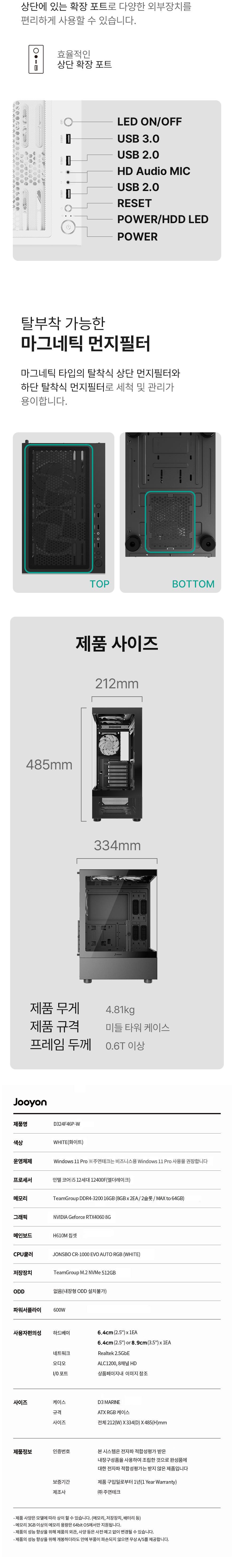Jooyon 2024 MARINE Core i5 英特爾 12代 GeForce RTX 4060, WHITE, D324F46P-W, 16GB, WIN11 Pro, 512GB