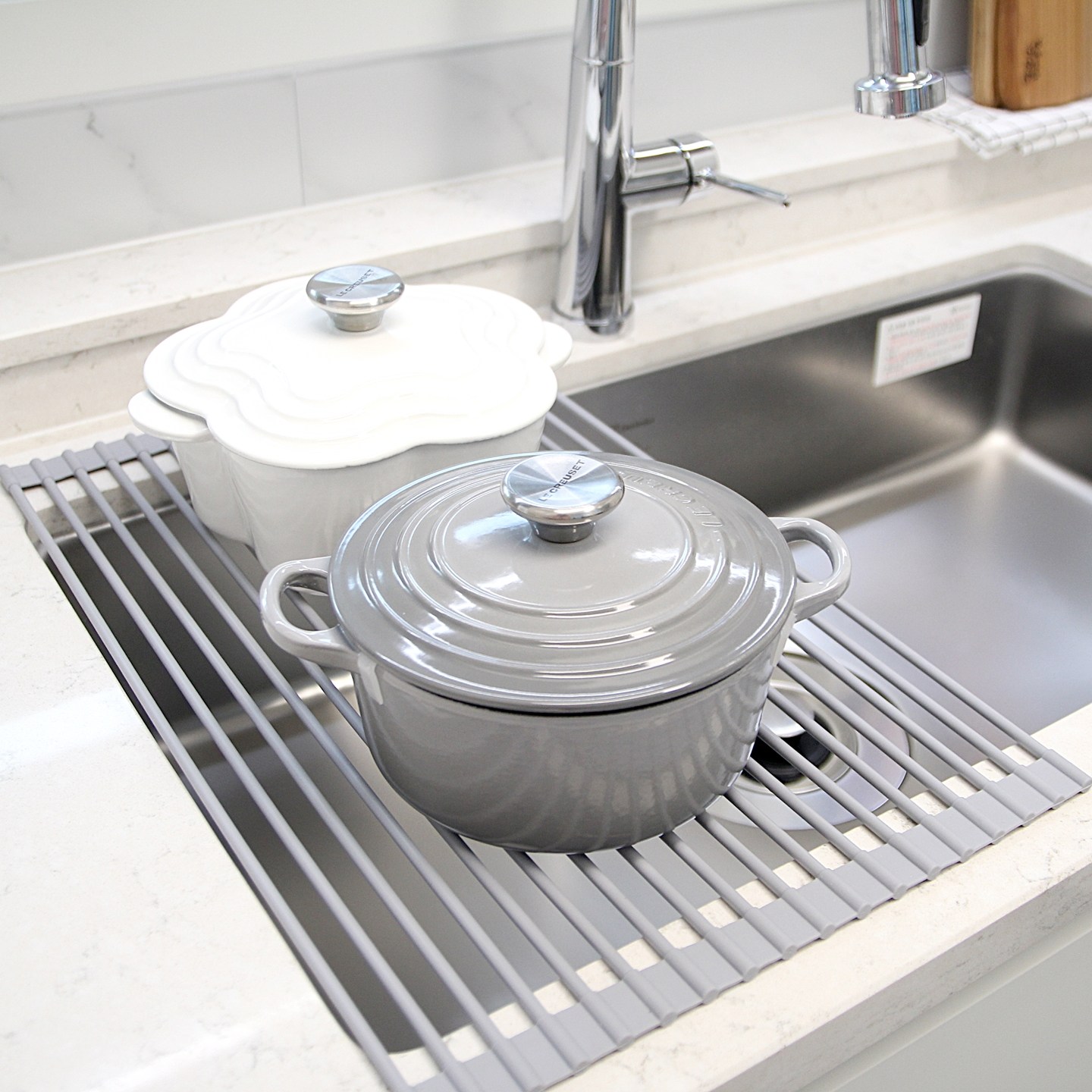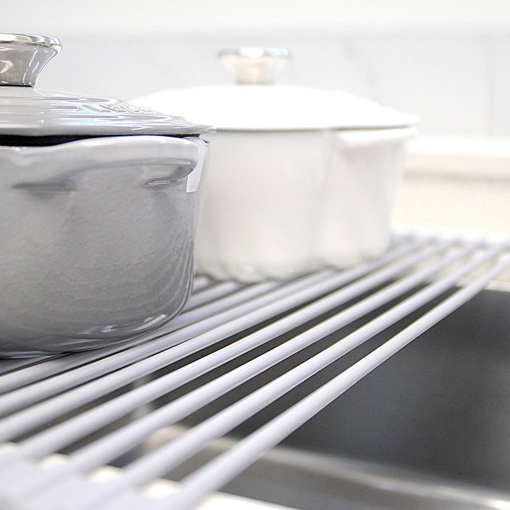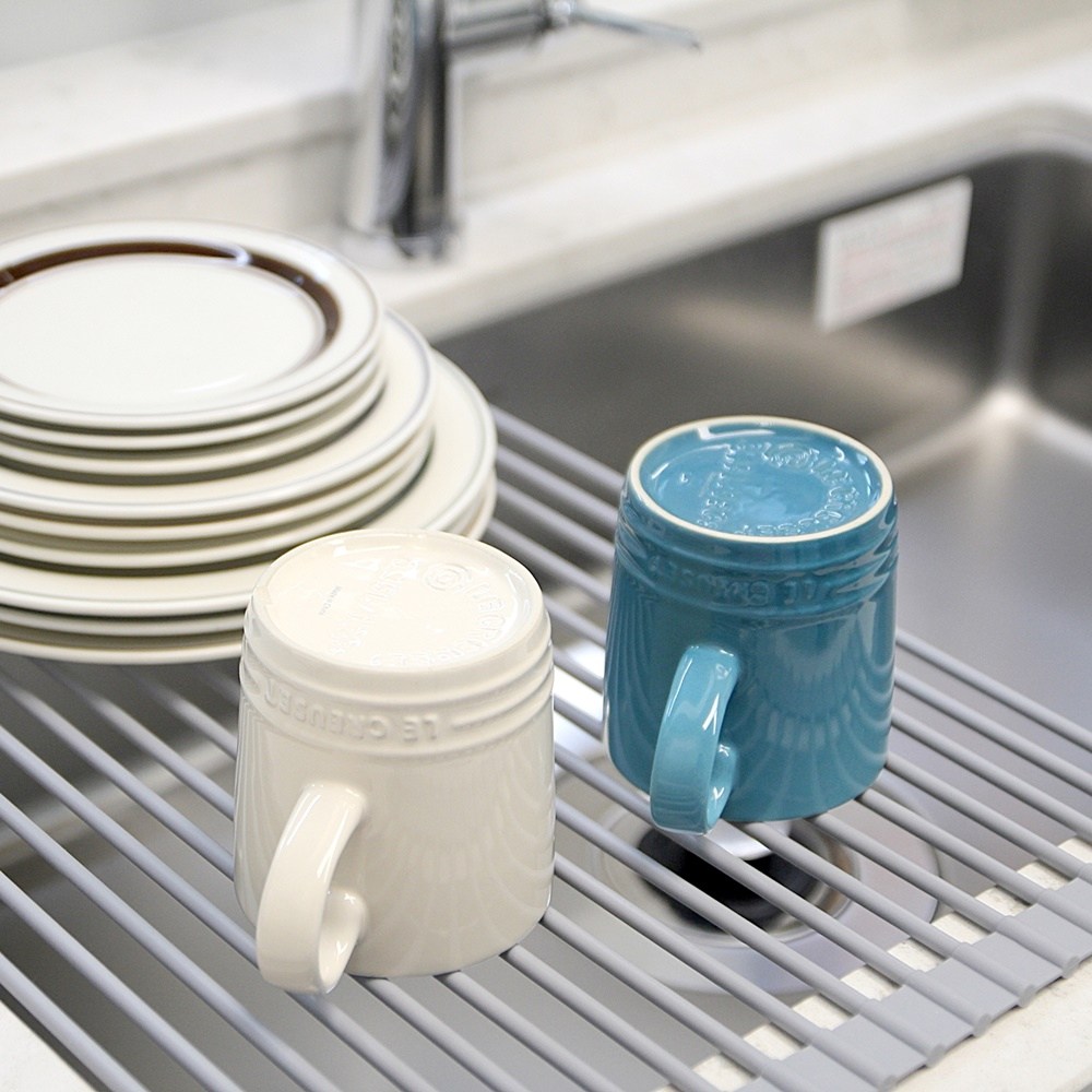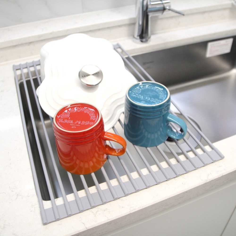 - 矽膠瀝水墊可捲起收納,節省廚房空間,讓檯面保持整潔。