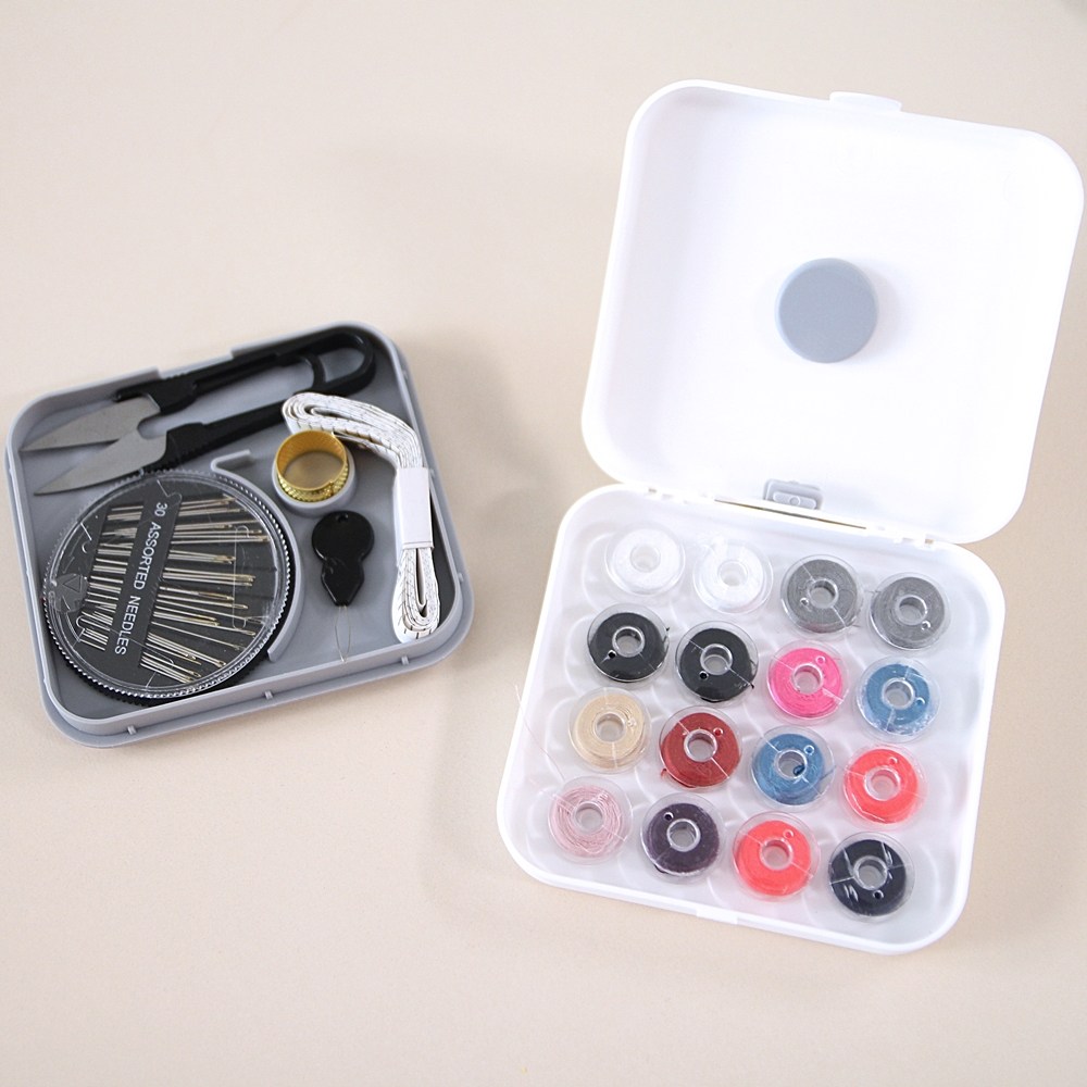 - 內含多種縫紉工具,如穿針器、皮尺、針盒、剪刀和縫線,一盒滿足您的基本縫紉需求。
