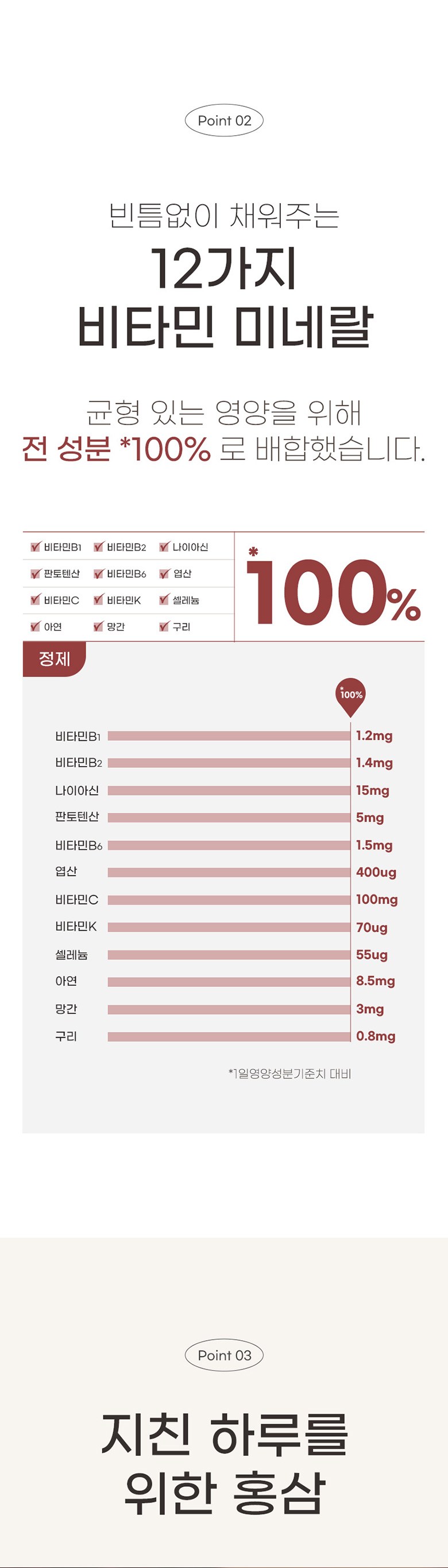 - 嚴選六年根紅蔘,搭配多種維生素及礦物質,提供均衡營養,有助於增強體力,告別疲勞,讓您活力滿滿。