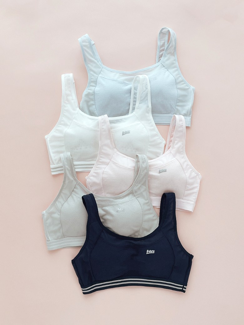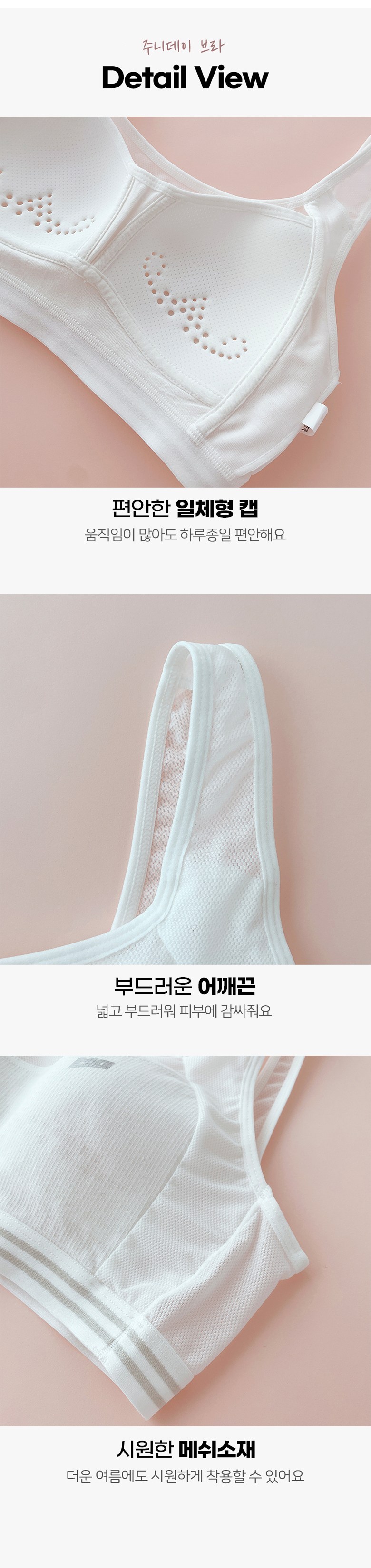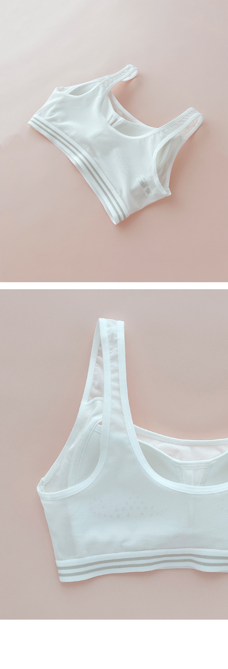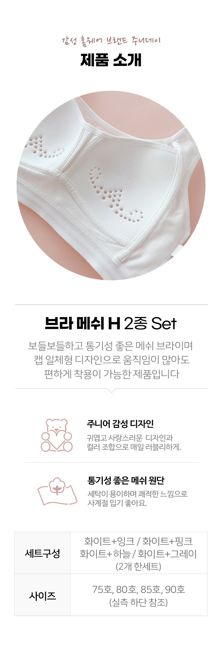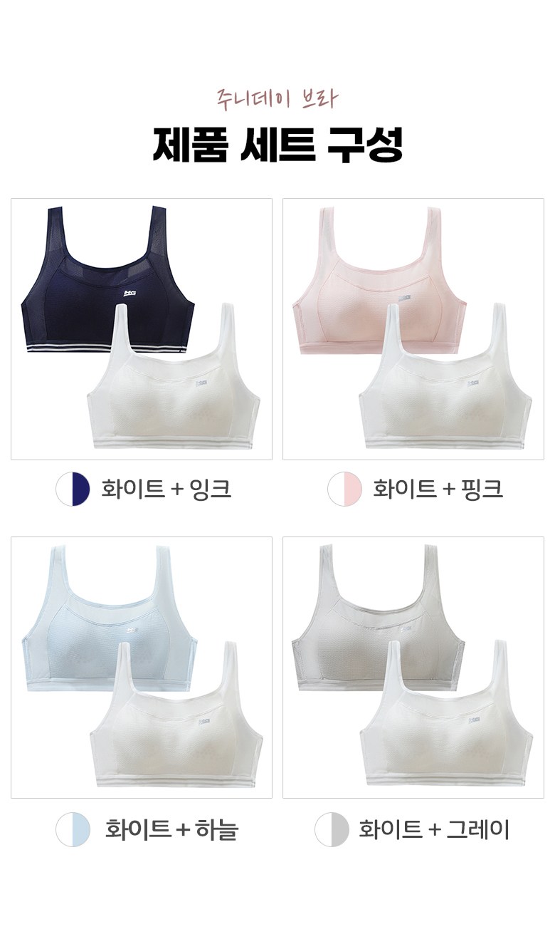 Juniday H型網眼胸罩2件組,專為青少年設計,採用柔軟透氣的網眼布料,即使在炎熱的夏天也能保持涼爽舒適。罩杯一體成型設計,活動量大也能整天保持舒適。可愛迷人的設計與色彩組合,每天都可愛。套組包含白色+墨色/白色+粉色/白色+天藍色/白色+灰色。材質親膚,易於洗滌,適合四季穿著,是少女們的日常胸罩首選。