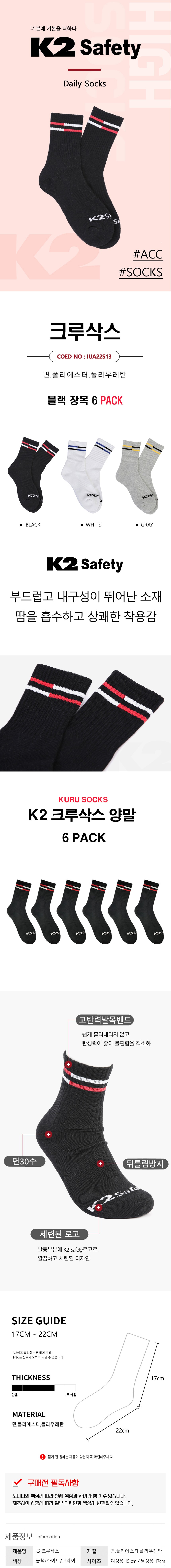 K2 Safety 運動中筒長襪六雙組,採用吸濕排汗材質,讓您在運動時保持足部乾爽舒適。高彈力襪口設計,不易滑落,提供穩固的穿著體驗。中筒長度提供足踝適當的保護與支撐,減少運動傷害。無論是跑步、健身還是日常休閒,這款襪子都是您的理想選擇。黑色設計簡約時尚,適合各種場合穿著。一組六雙,經濟實惠,滿足您的日常需求。