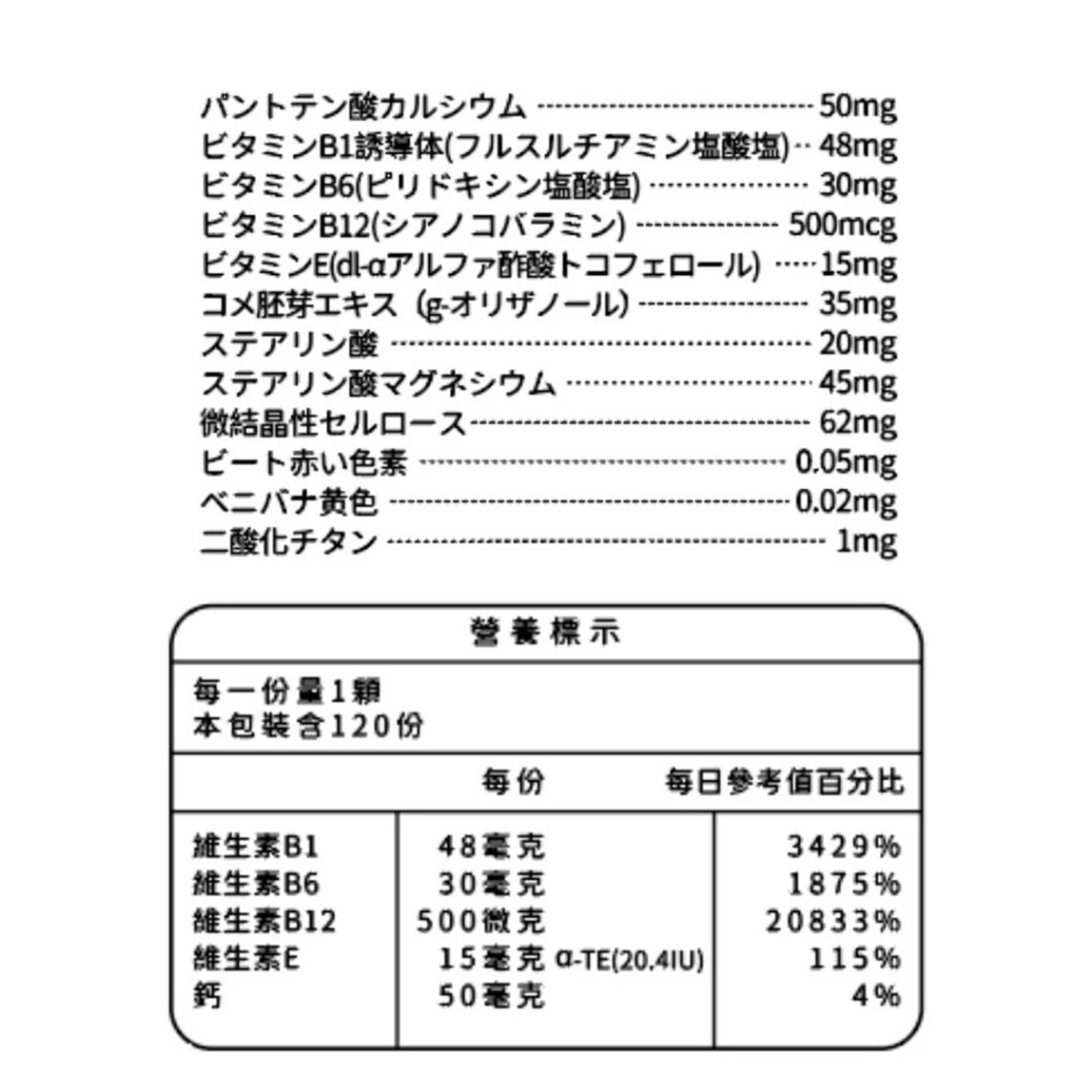 KACHO活力舒錠是一款日本原裝進口的活力B群加強錠,專為忙碌的現代人設計。本產品富含維生素B1、B6、B12以及維生素E,能有效補充每日所需營養,幫助提振精神,告別疲勞。此外,更添加γ-穀維素,提供更全面的健康支持。小顆錠劑設計,方便吞嚥,每日一顆,讓您輕鬆維持健康活力。適合經常熬夜、工作壓力大、需要補充體力的人士。