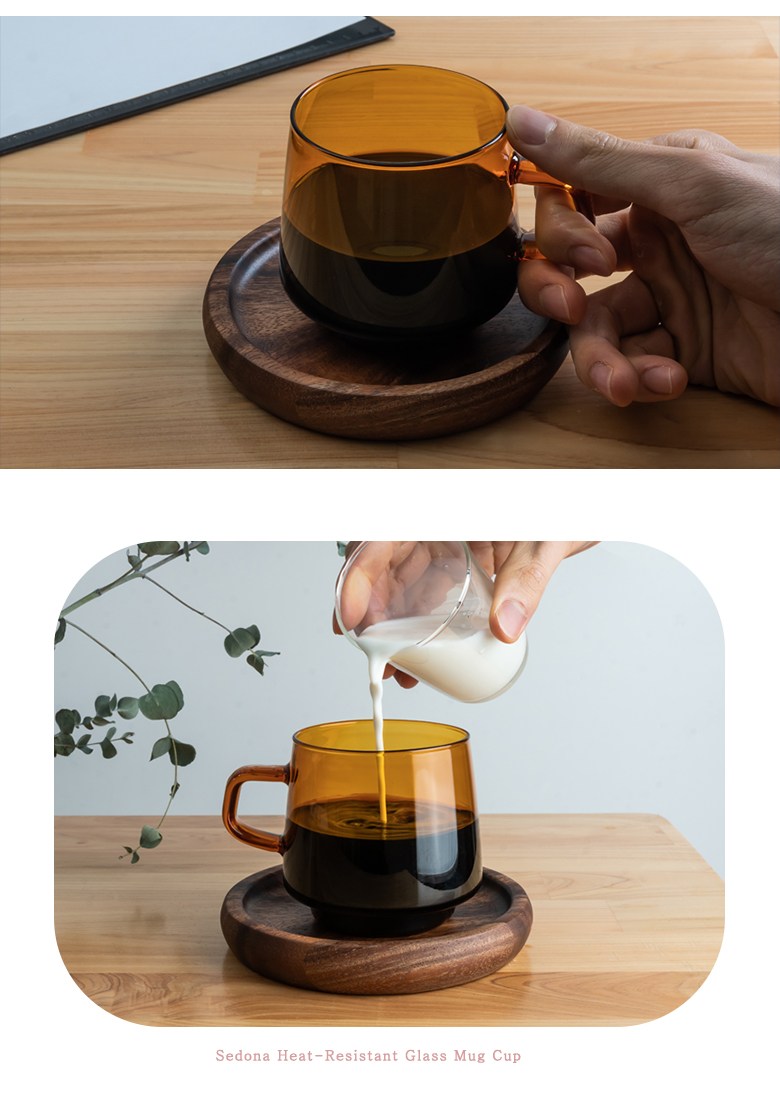 KALDIN Sedona耐熱玻璃杯套組,包含320ml與340ml琥珀色玻璃杯,搭配胡桃木托盤,為您的廚房帶來美觀與實用性。優雅的復古琥珀色調,能為廚房增添古典或清新的氛圍。耐熱玻璃材質,可承受高達120℃的溫差,無論冷飲或熱飲皆適宜。可堆疊設計,有效利用空間,讓收納更方便。胡桃木托盤則採用高級胡桃木製成,堅固耐用,為您的生活增添質感。