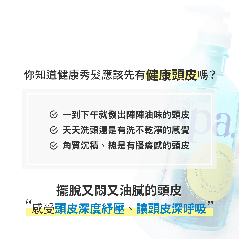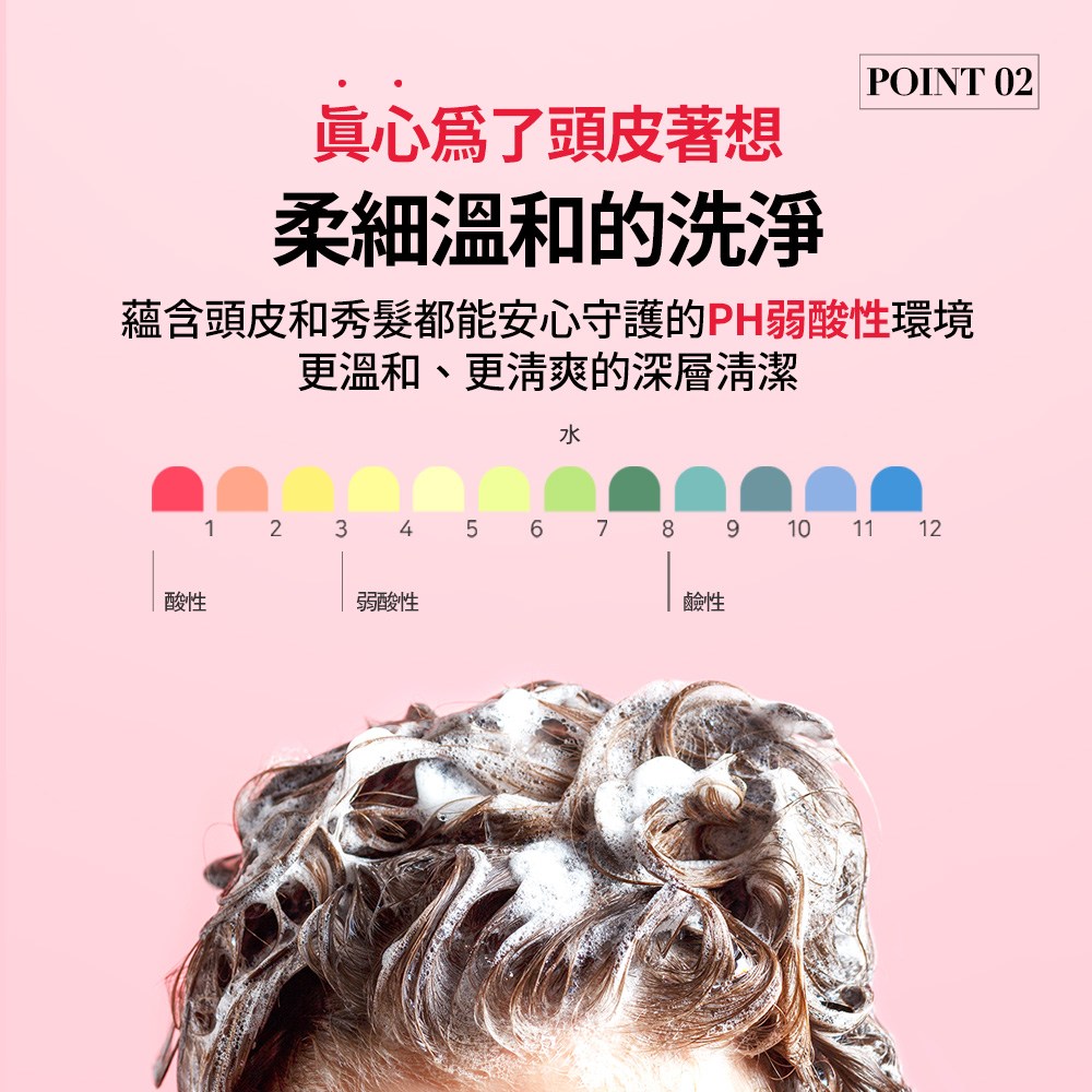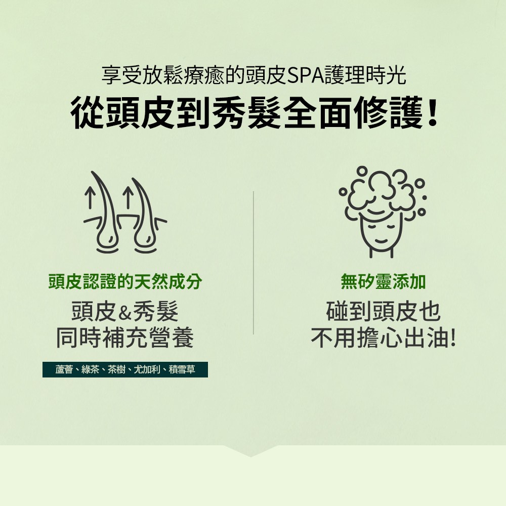 - 溫和配方呵護頭皮,不含刺激性成分,洗後頭皮不乾澀緊繃,感受舒適與放鬆。