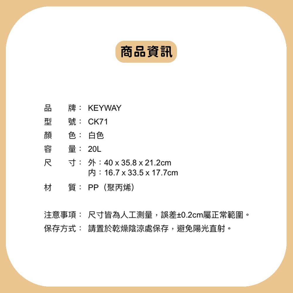 KEYWAY 單抽屜整理箱,為您的居家空間帶來整潔與秩序。這款20公升的白色收納箱,尺寸為400*358*212mm,採用優質塑膠製成,堅固耐用且易於清潔。單抽屜設計方便物品分類與取用,無論是衣物、玩具或雜物,都能輕鬆收納。簡約的白色外觀,能融入各種居家風格,提升空間質感。KEYWAY整理箱不僅實用,更注重您的健康與安全,材質通過嚴格檢驗,讓您安心使用。