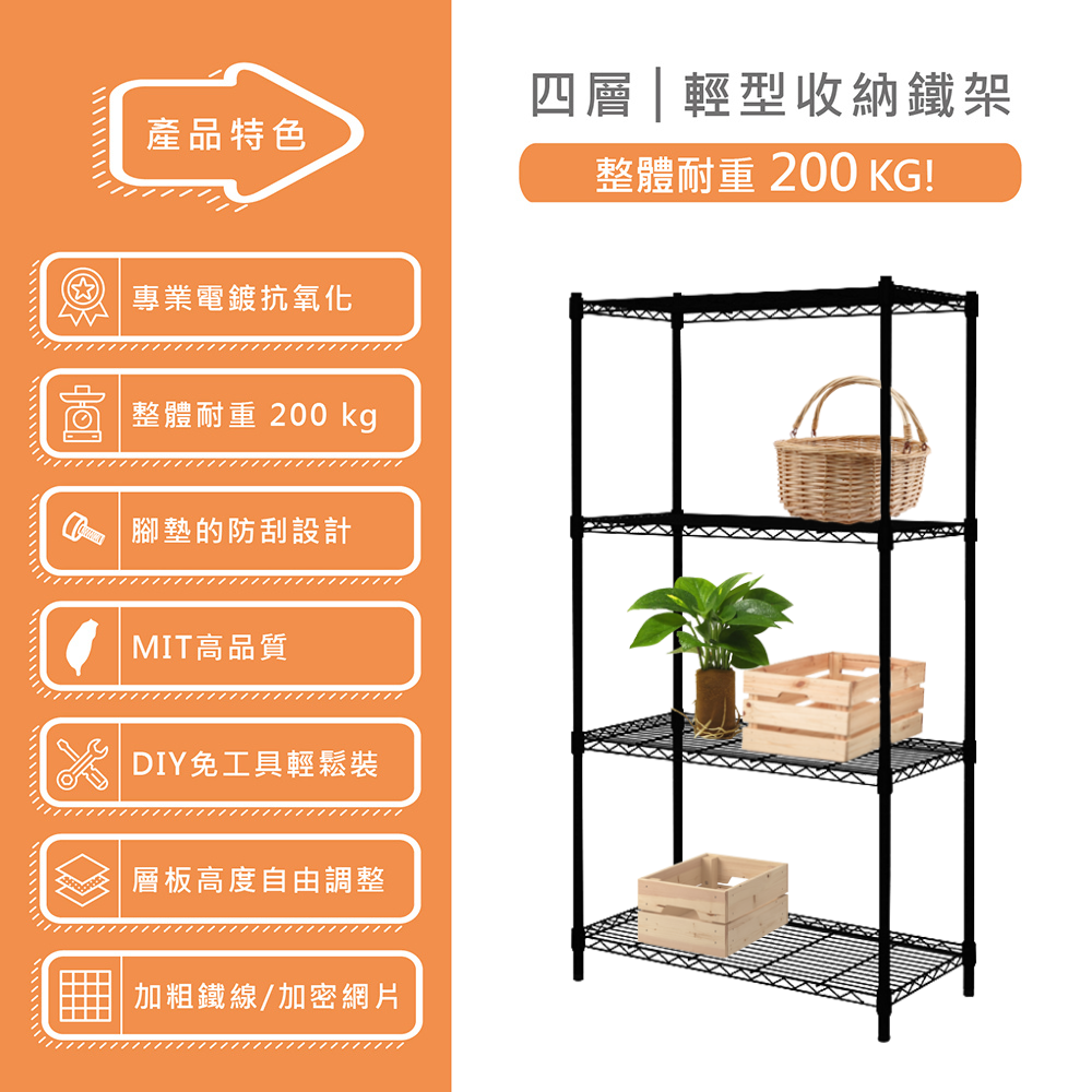 KI WISH 居家生活輕型四層架是您理想的收納解決方案。這款四層架採用輕型設計,方便移動和重新佈置,讓您輕鬆打造理想的居家空間。黑色外觀簡約時尚,能輕易融入各種居家風格,提升空間美感。開放式層架設計,方便拿取物品,讓收納和整理更加輕鬆便捷。適用於各種場所,無論是客廳、臥室或廚房,都能有效利用空間。