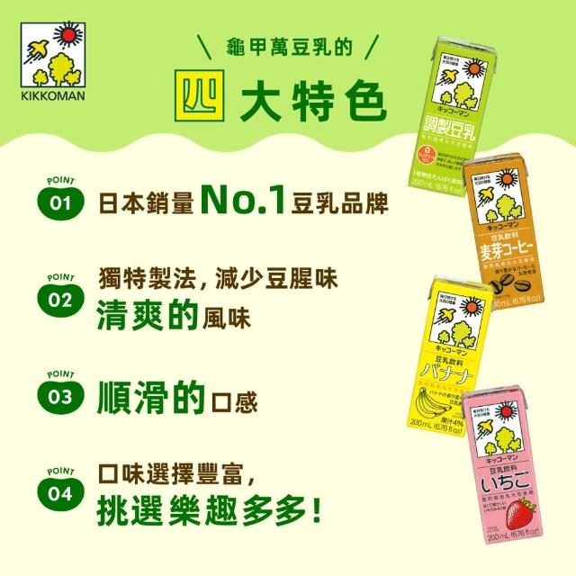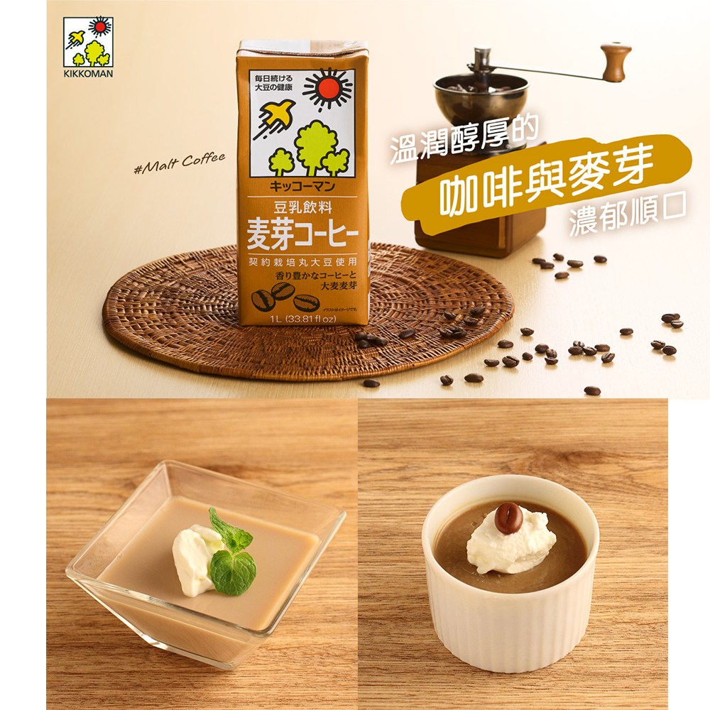 - 龜甲萬麥芽咖啡豆乳,口感滑順,享受咖啡與豆乳的完美結合,早餐或下午茶的理想選擇。