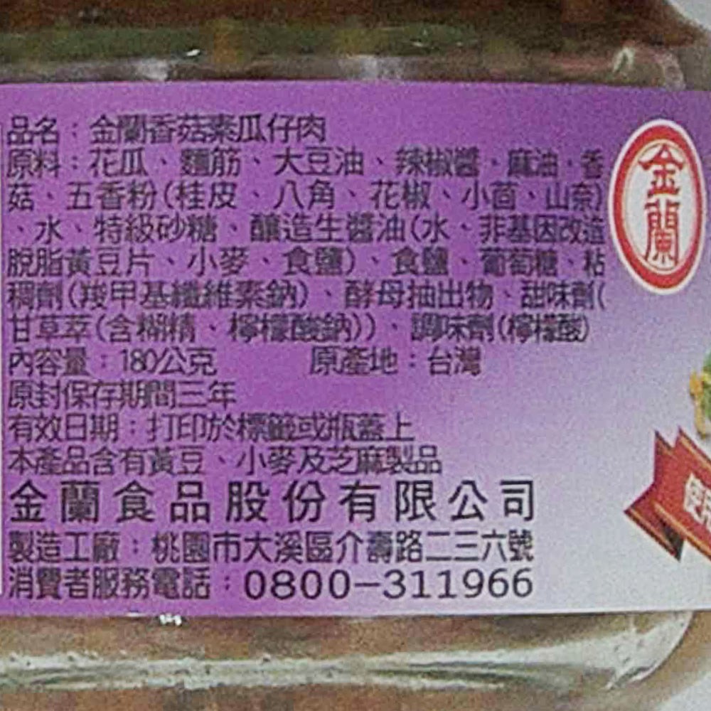 品嚐金蘭素瓜仔肉,感受台灣傳統風味!這款180g罐裝的素食佳餚,以非基因改造黃豆釀造,不含防腐劑,讓您安心享用,搭配獨家配方,口感豐富,香氣四溢。無論是搭配米飯、麵食,或是作為佐餐小菜,都能為您的餐桌增添美味。開封後請冷藏保存,確保新鮮。