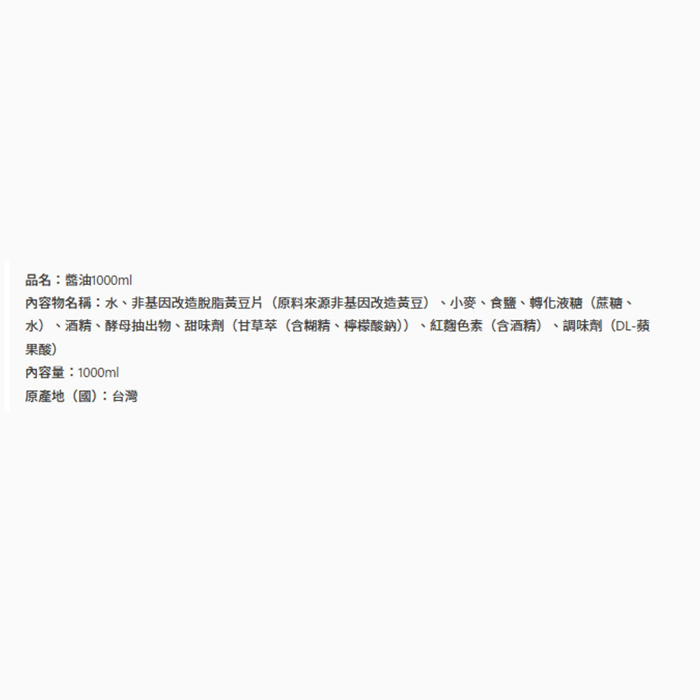 - 醬油香氣濃郁,口感醇厚,為您的菜餚增添豐富層次,讓您食指大動。
