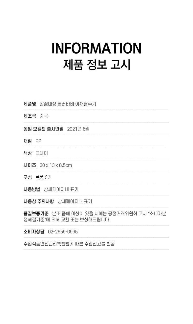KKALKKEUMDAEJANG 按壓式蔬菜瀝水器, 單一顏色, 2個