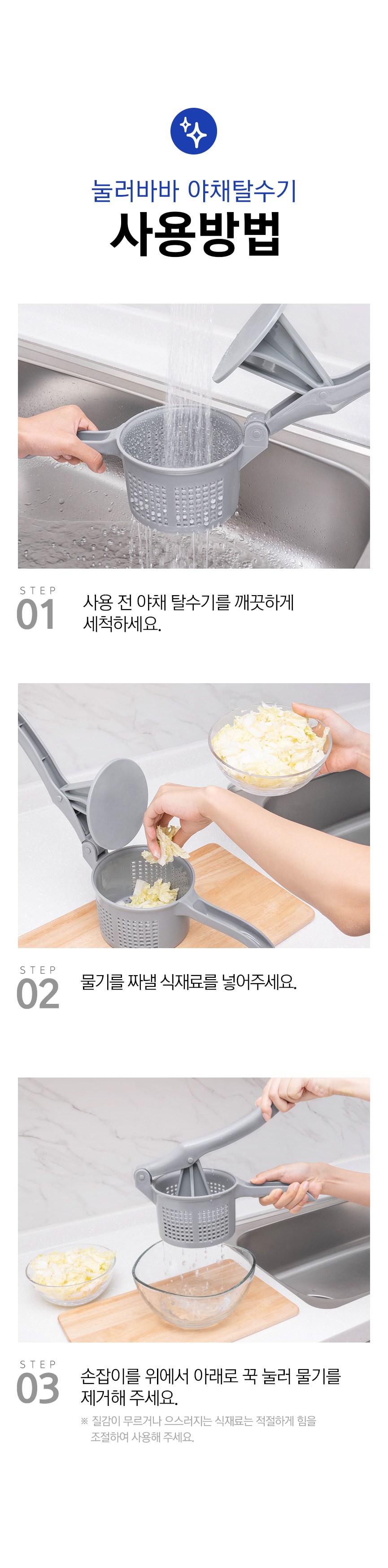 - 按壓式設計輕鬆瀝乾蔬菜水分,告別手動擰乾的麻煩,讓料理準備更省時省力。