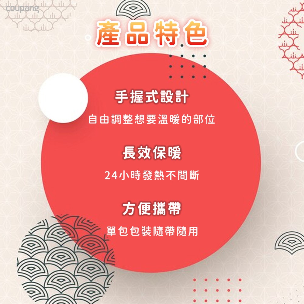 - 手握式設計方便使用,無需黏貼,讓您自由調整溫暖部位,隨心所欲。