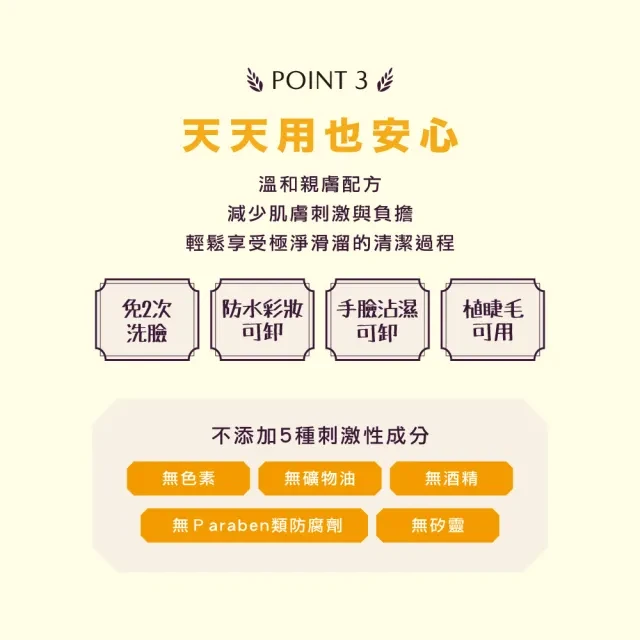- 卸妝同時溫和去除老廢角質,改善毛孔粗大問題,使肌膚更加細緻。