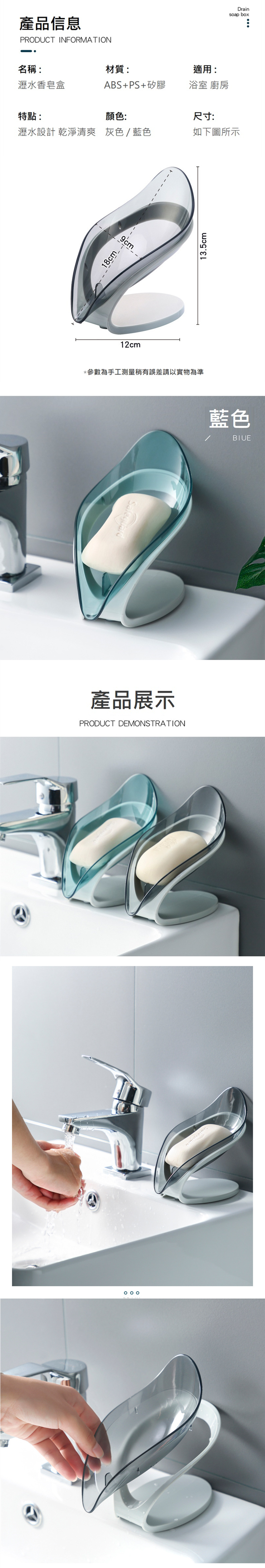 KOTI日安生活 樹葉型瀝水肥皂盒 - 乾淨清爽, 透明藍, 1個