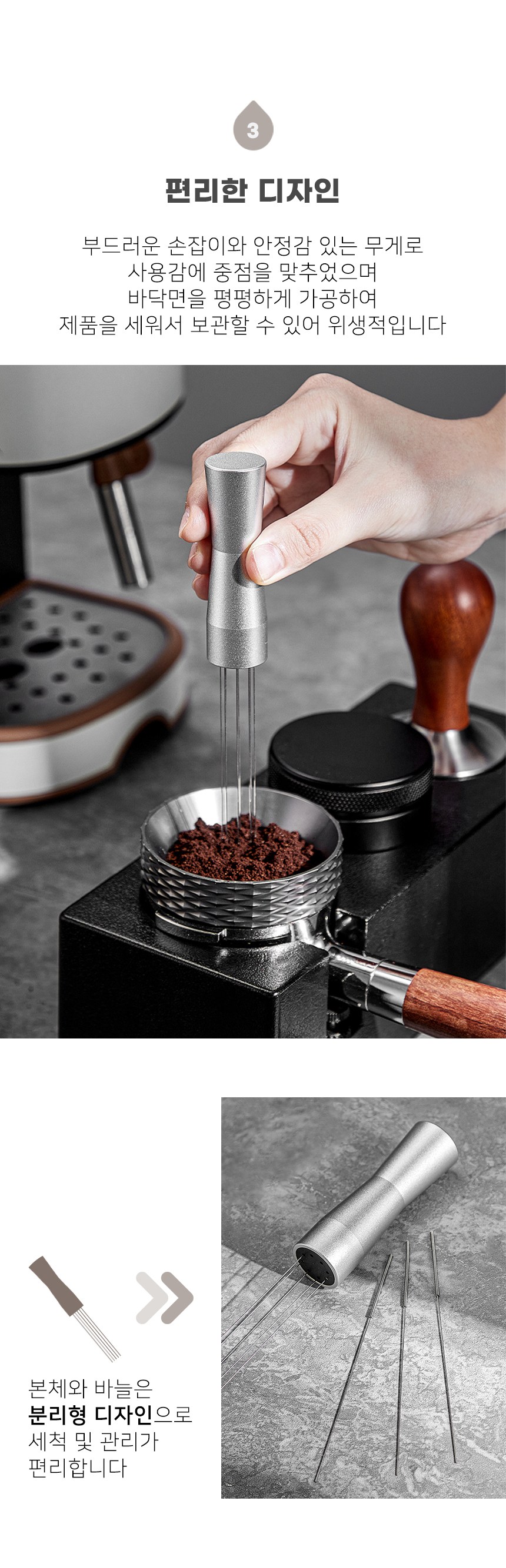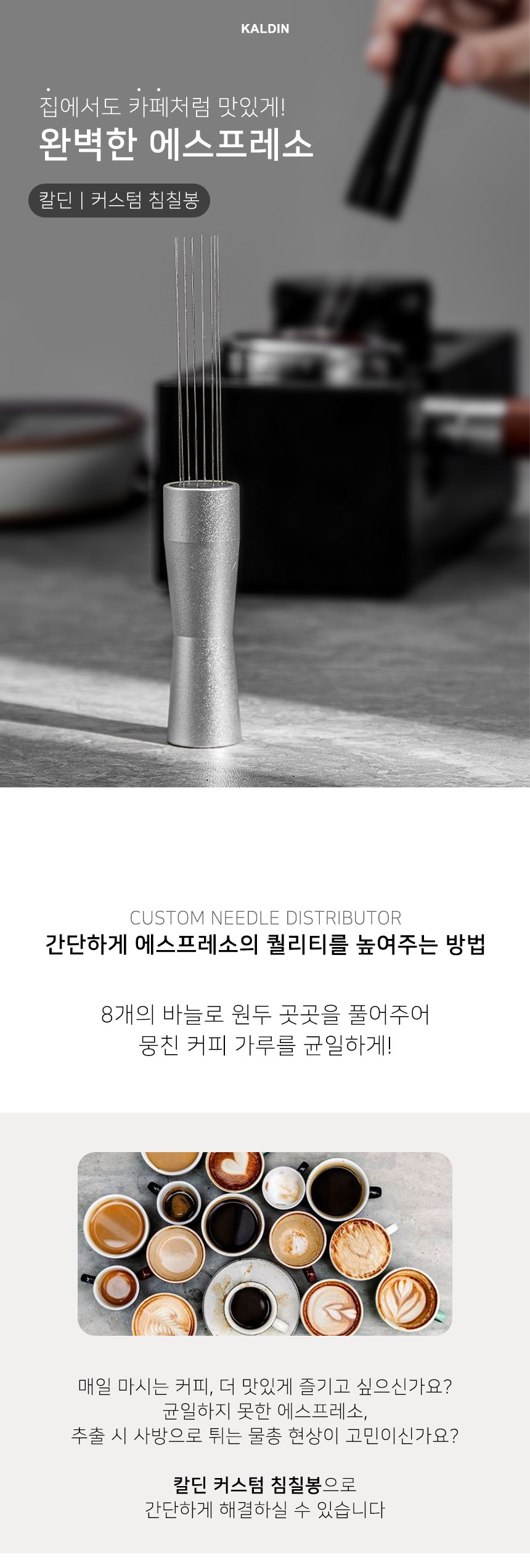Kaldin咖啡整粉器佈粉針,採用304不鏽鋼材質,安全耐用,讓您使用。其獨特的八針設計,能有效分散咖啡粉,減少萃取不均勻的問題,提升咖啡的整體風味。符合人體工學設計的手柄,提供舒適的握感,讓您輕鬆操作。無論是專業咖啡師還是咖啡愛好者,都能輕鬆上手,享受更美味的咖啡體驗。告別萃取不均,享受每一杯都完美的意式濃縮咖啡。