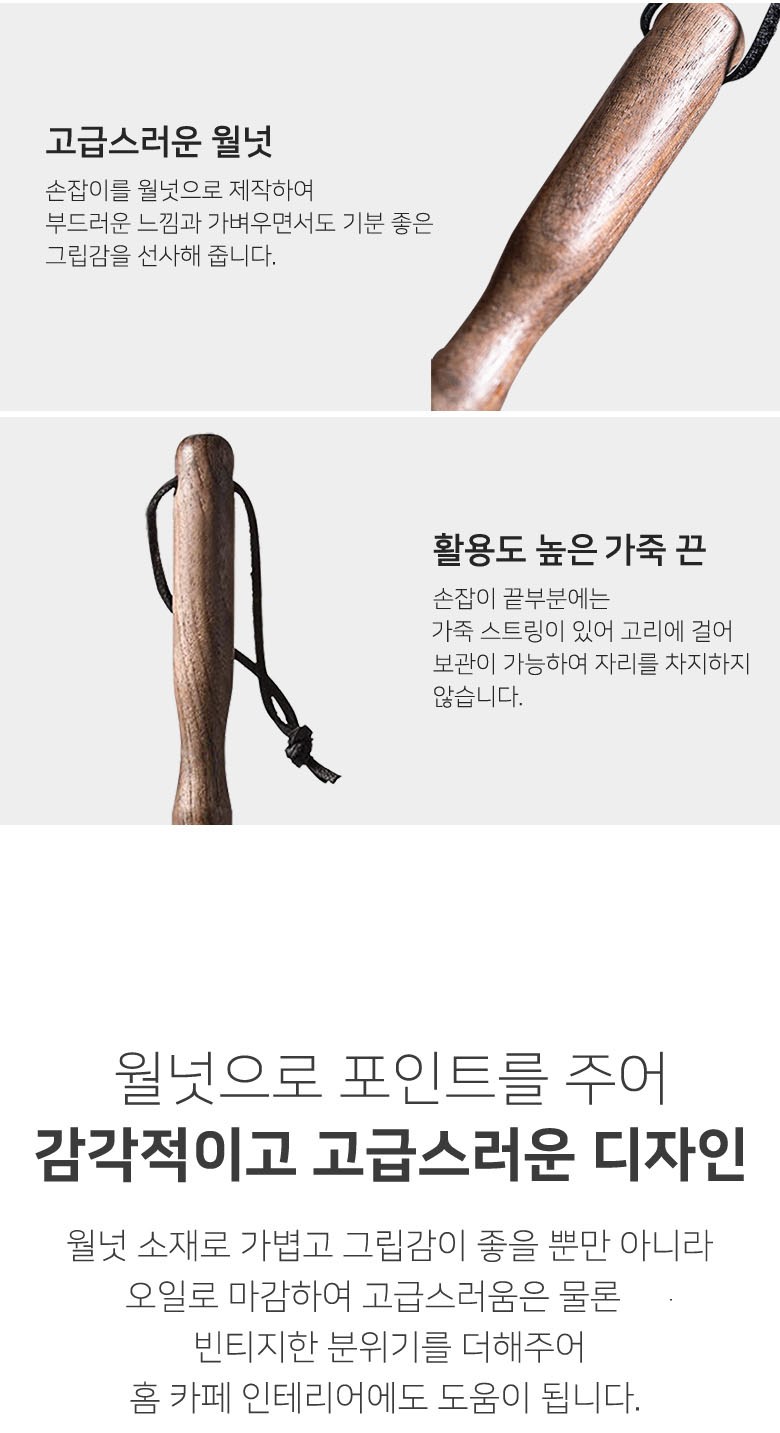 - 採用胡桃木手柄,提供舒適握感,讓您在清潔磨豆機時更加輕鬆省力,享受每一次的咖啡時光。