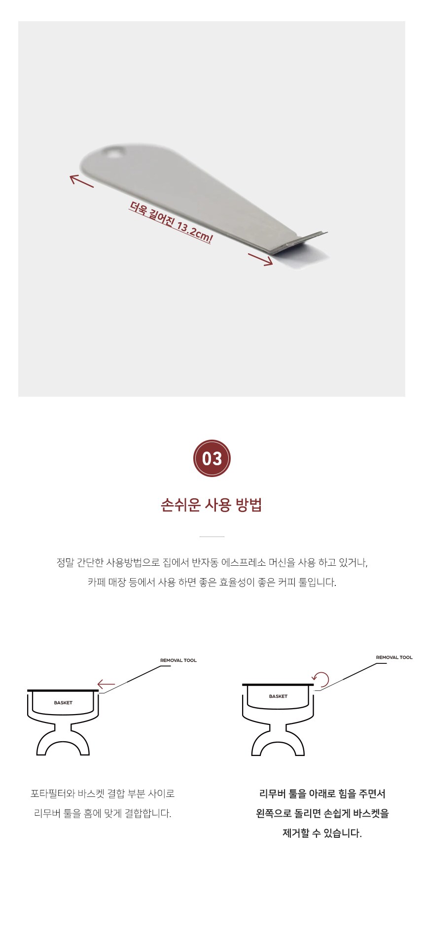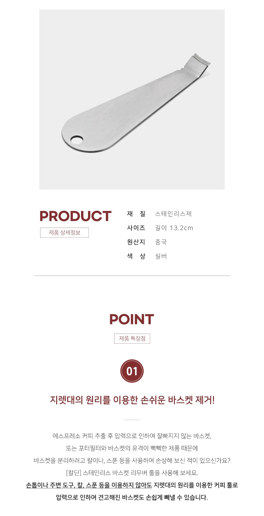 這款Kaldin手沖咖啡把手濾杯拆卸工具,採用不鏽鋼材質,利用槓桿原理,讓您輕鬆取出濃縮咖啡萃取後因壓力而難以取出的濾杯籃。告別使用刀或湯匙分離籃子而造成損壞的困擾。加長至13.2公分的設計,提供更好的握感,操作更便利。輕巧的設計方便攜帶,讓您在家或咖啡店都能輕鬆使用半自動濃縮咖啡機,享受咖啡的樂趣。不鏽鋼材質堅固耐用,是咖啡愛好者的理想選擇。
