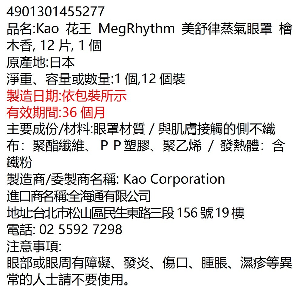 - 花王美舒律蒸氣眼罩,檜木香氛能舒緩整日疲勞,讓雙眼享受如森林浴般的放鬆體驗。